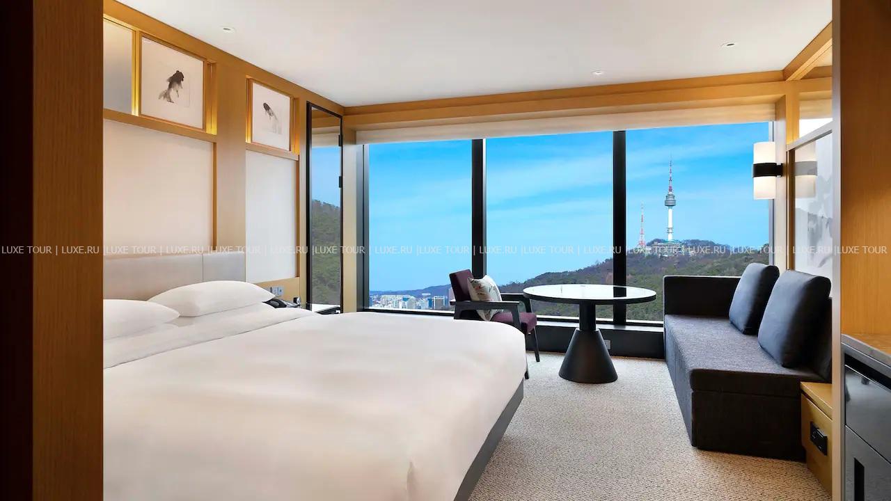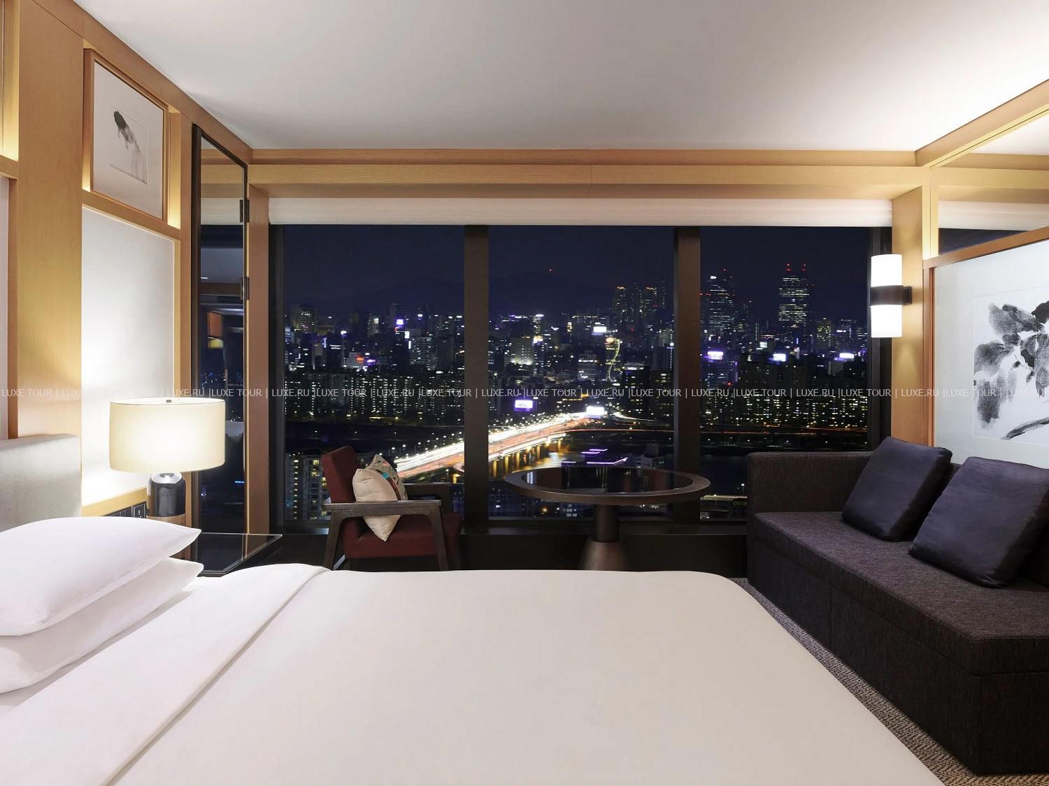 Впечатляющее современное здание Grand Hyatt Seoul возвышается на живописной горе Намсан, среди 7 гектаров красивейшего ландшафтного парка с экзотическими растениями, журчащими водопадами и панорамным видом на Сеул и реку Хан. Потрясающий вид на город открывается из панорамных окон стильных номеров, из бассейна олимпийских размеров, с террас элегантных ресторанов и баров. Гурманы по достоинству оценят гастрономическую аллею 322 Sowolro с четырьмя ресторанами, представляющими азиатскую кухню в разных вариациях. Для любителей активного отдыха имеется клуб Olympus с фитнес-центром, теннисными кортами и зимним катком. После спортивных занятий и увлекательных экскурсий можно расслабиться в первоклассном Spa-центре с крытым бассейном и корейской сауной, а для деловых и торжественных мероприятий отель предлагает конгресс-центр с залами, вмещающими от 20 до 2000 человек. Grand Hyatt Seoul – роскошный оазис для отдыха, туристических и бизнес-поездок в Сеул.