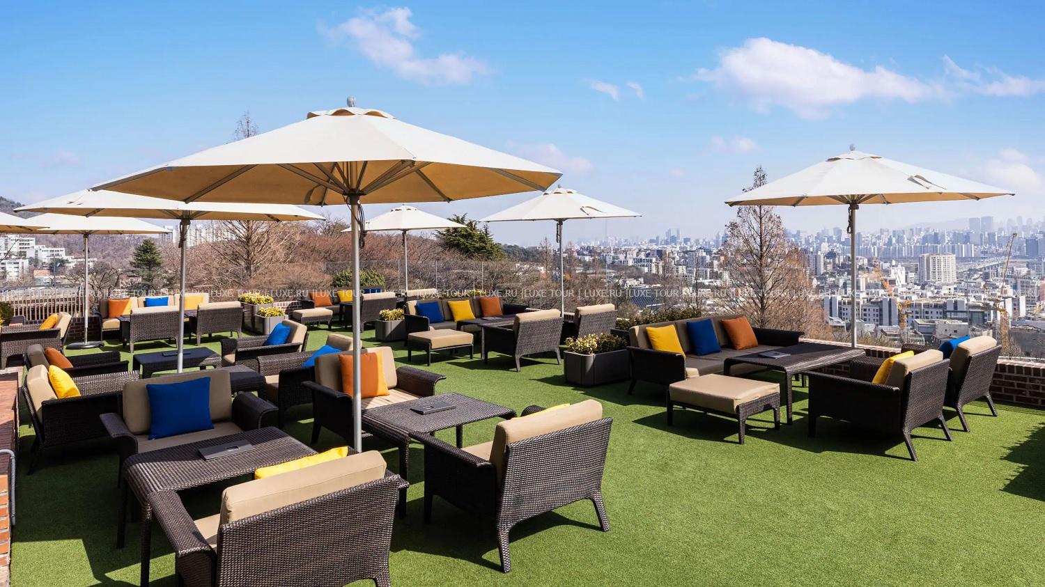 • Ресторан The Terrace с открытой террасой и видом на Сеул представляет «шведский стол» с разнообразием блюд интернациональной кухни.