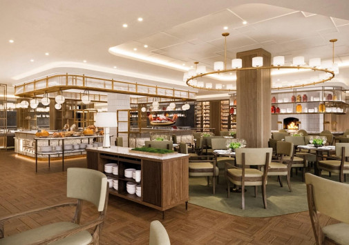 • 1955 Groceria представляет современную концепцию «гросеран» (grocerant), объединяющую гастрономический ресторан и продуктовый магазин.