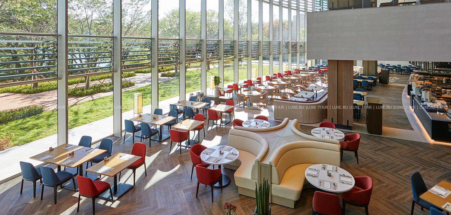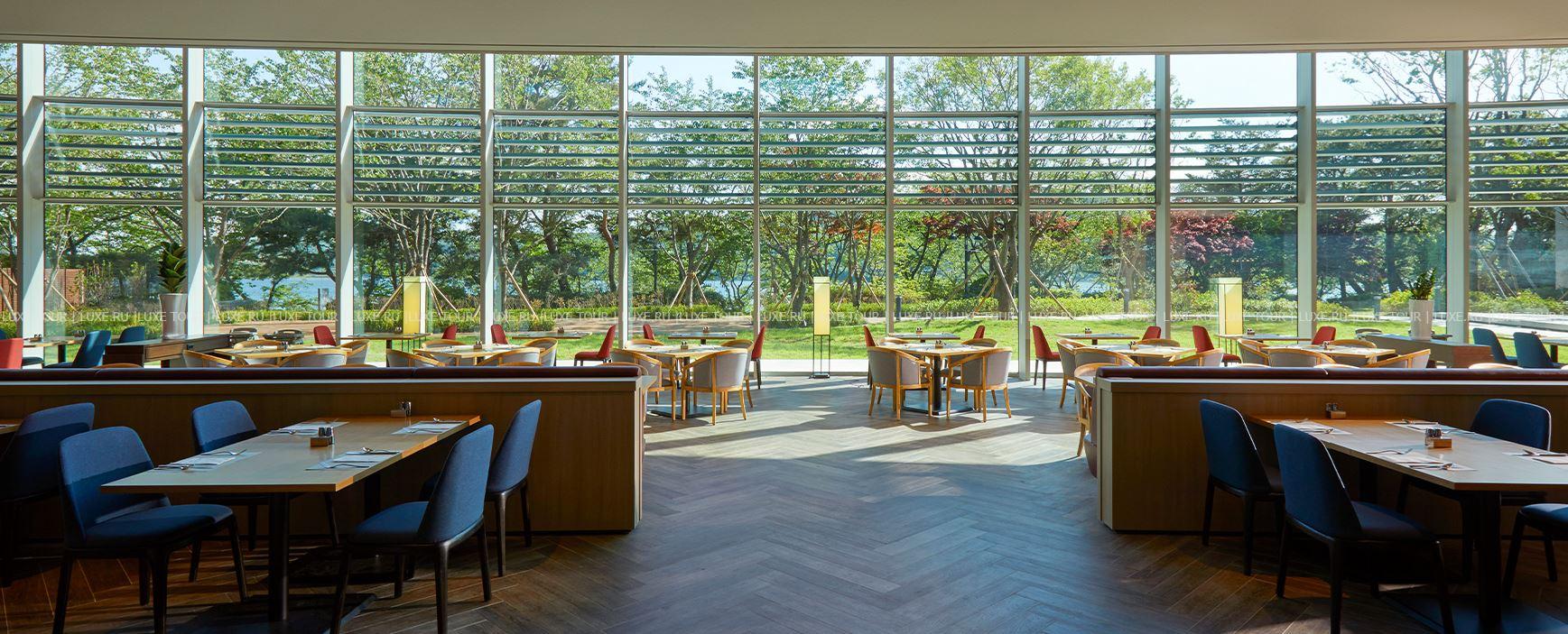 - Ресторан The Plate с панорамными окнами и видом на озеро Бомун представляет более 200 блюд азиатской и западной кухни на «шведском столе».
