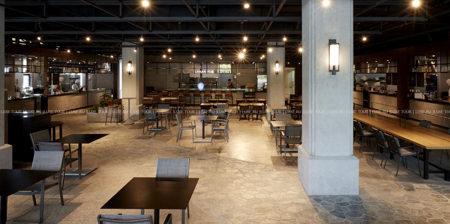 - Элегантный ресторан Market 338, вдохновленный европейскими продуктовыми рынками, предлагает изысканные блюда международной и корейской кухни.