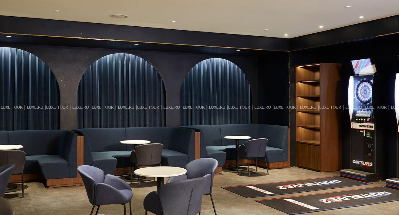 - В стильном лобби-лаундже в течение всего дня можно отдохнуть за коктейлем, чашечкой кофе, бокалом вина или пива, любуясь чарующими пейзажами озера Бомун.