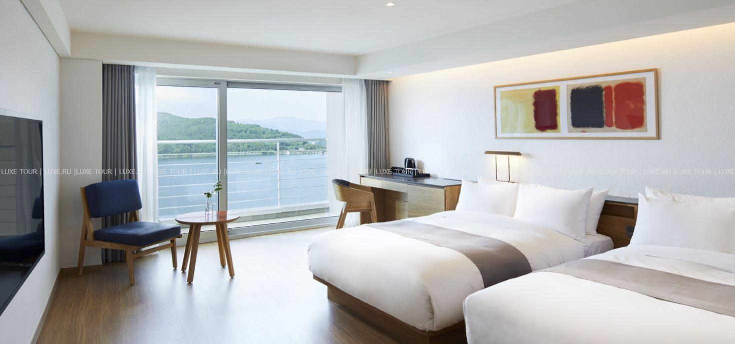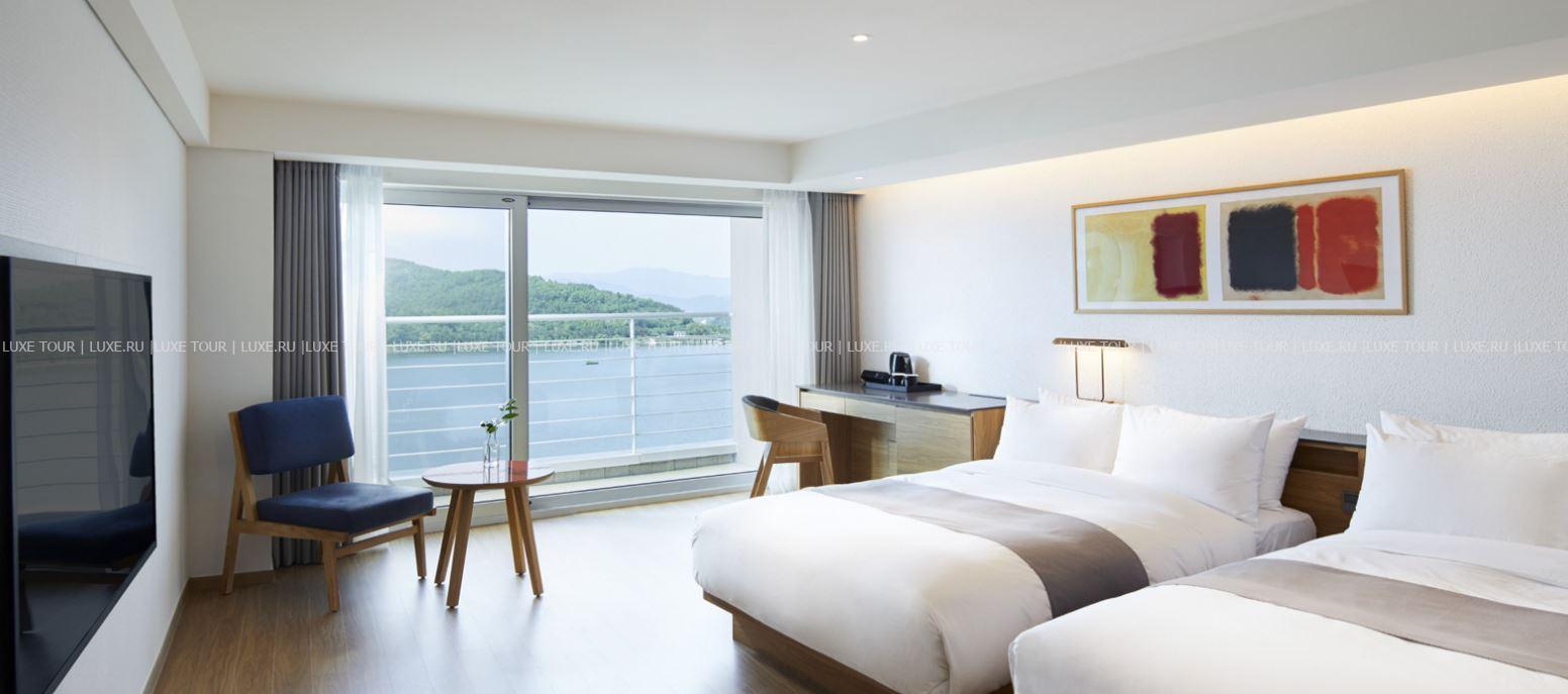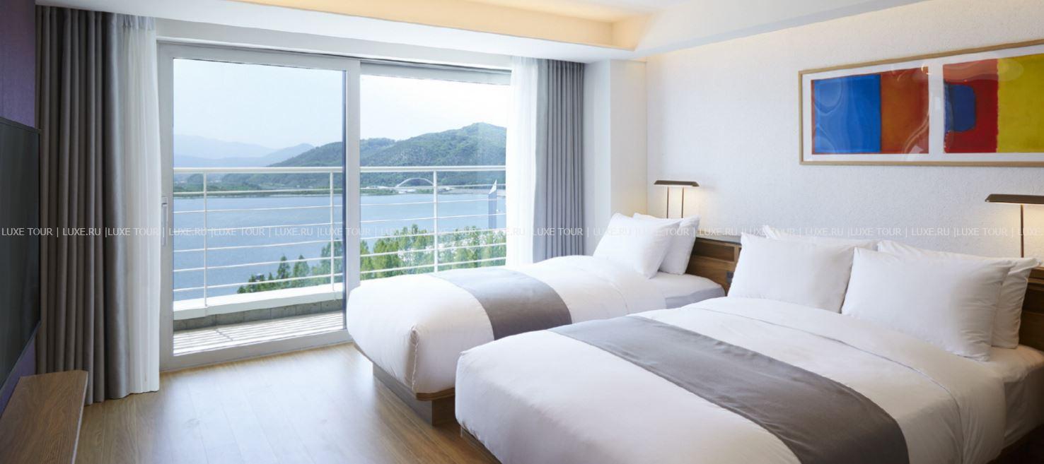 Современное здание Lahan Select Gyeongju возвышается на берегу озера Бомун – одного из главных мест в Кёнджу для любования сакурой. Чарующий вид на искрящееся на солнце озеро, пышные сады и поросшие лесами горы открывается с балконов стильных номеров, из изысканных ресторанов и элегантного лобби-бара. Красоту окружающих пейзажей дополняет первоклассный сервис отеля. К услугам гостей открытый и крытый бассейны, детский клуб, фитнес-центр, боулинг и великолепные залы для деловых и торжественных мероприятий любого уровня. Lahan Select Gyeongju – прекрасный отель для отдыха, деловых и туристических поездок в древний Кёнджу.
