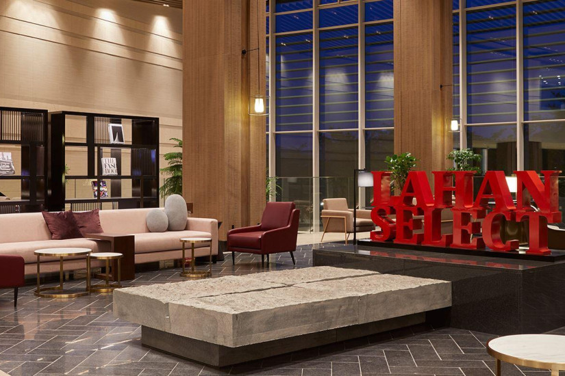 - 77 м2. Состоит из спальни с кроватью king-size или с двуспальной и односпальной кроватями, гостиной, гардеробной, ванной комнаты с ванной и душем, в некоторых номерах балкон с видом на озеро Бомун. Номера расположены угловой части здания. Максимальное размещение – 3 человека. Гостям номера предоставляется доступ в клубную гостиную.