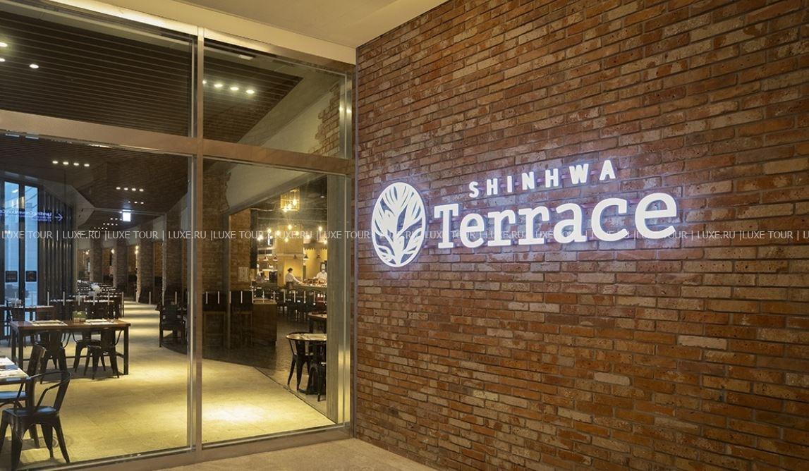 - В ресторане Shinhwa Terrace с открытой террасой и панорамным видом на курорт подают завтрак «шведский стол» с разнообразием блюд международной и корейской кухни, приготовленных из свежих местных продуктов.