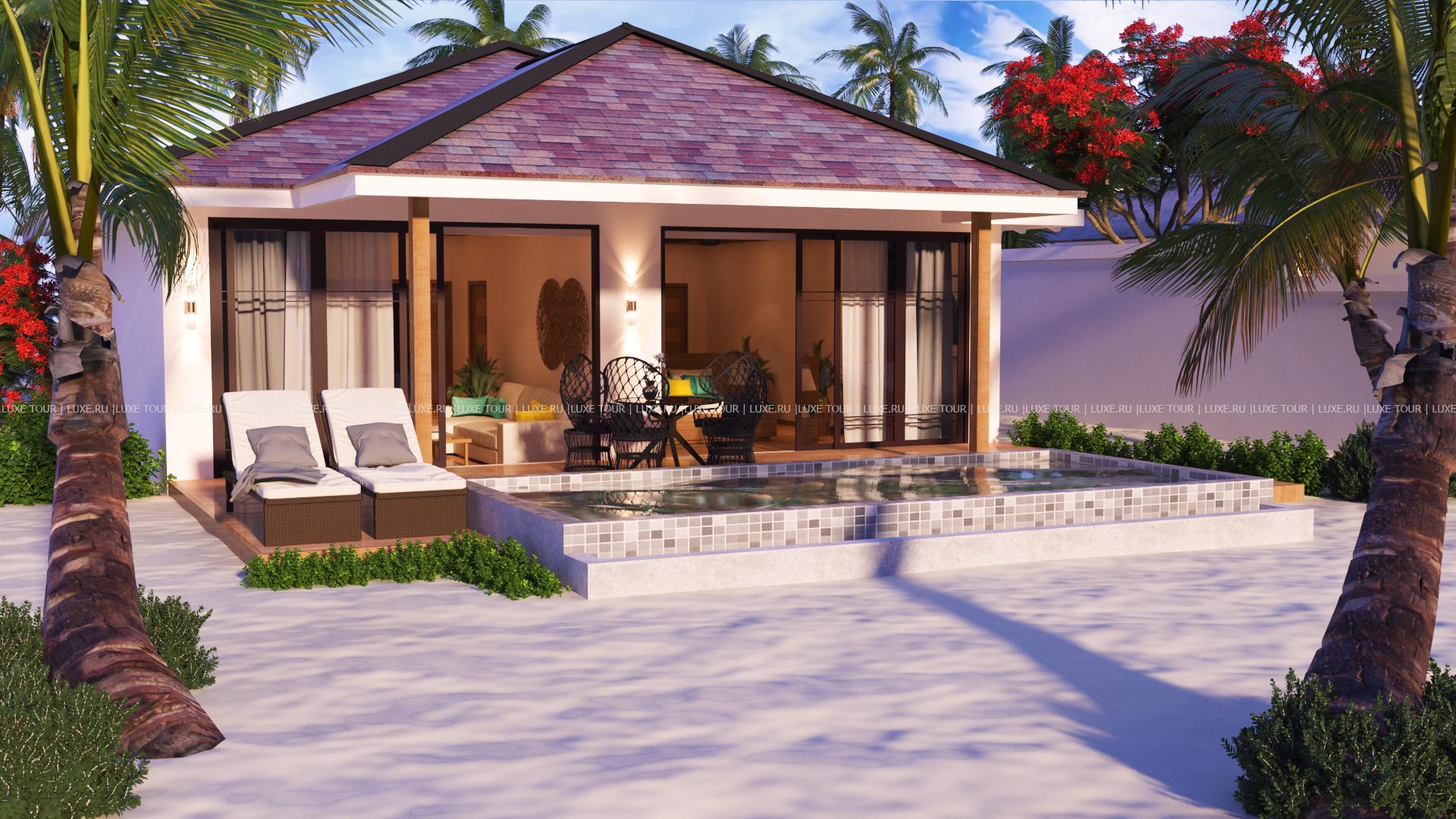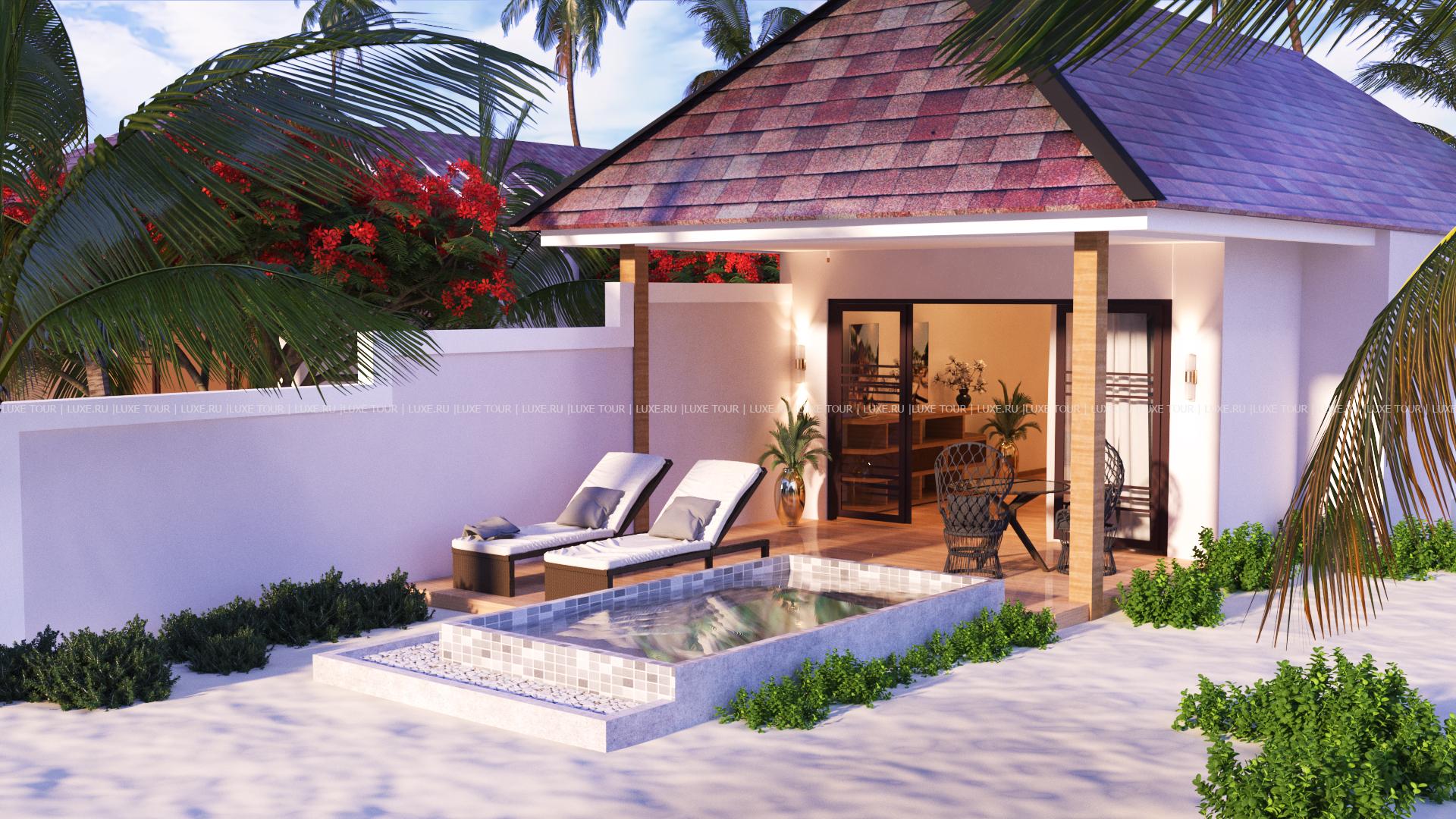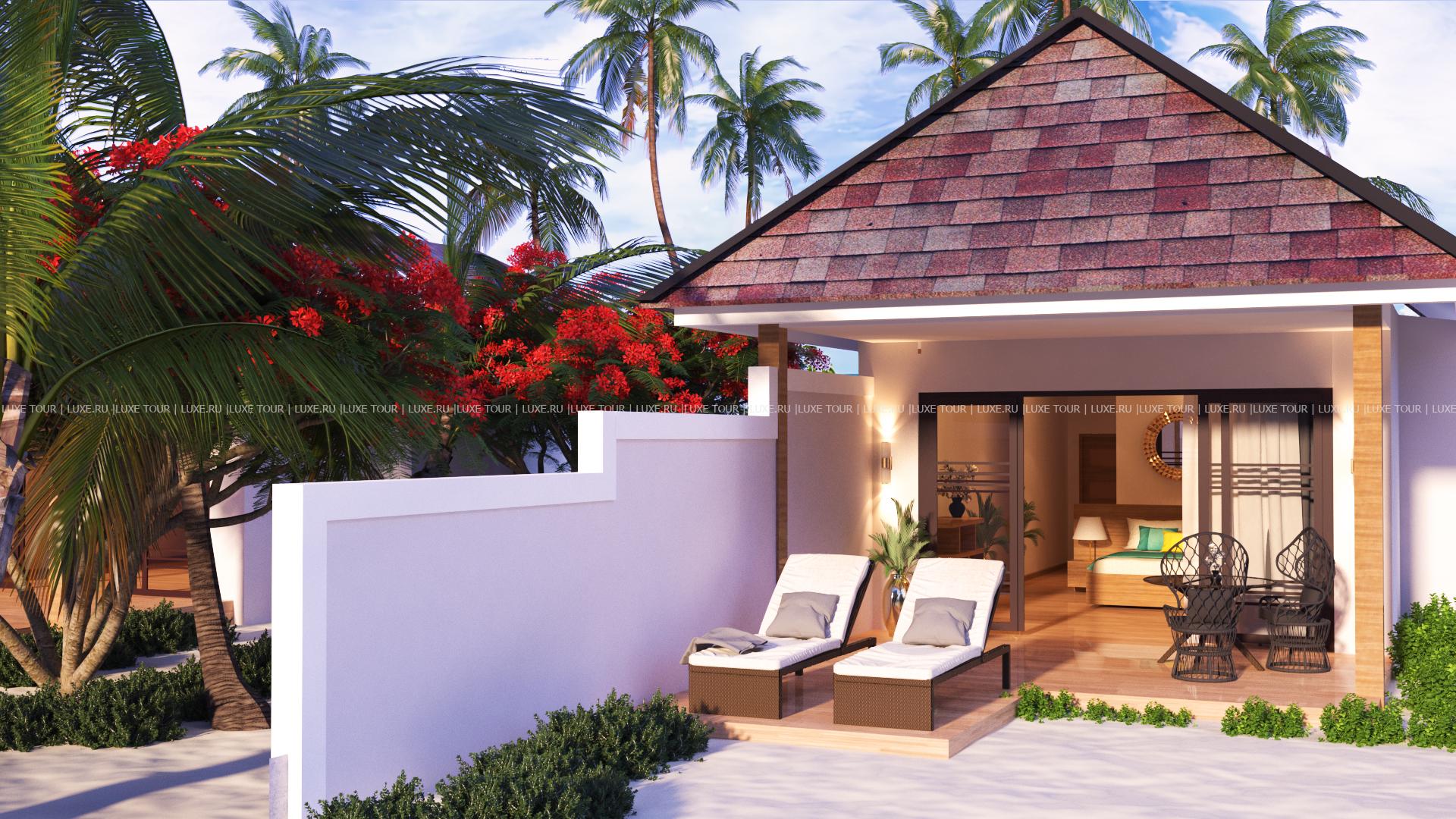 Отель располагает великолепным пляжем с белоснежным песком и коралловым рифом в лагуне.