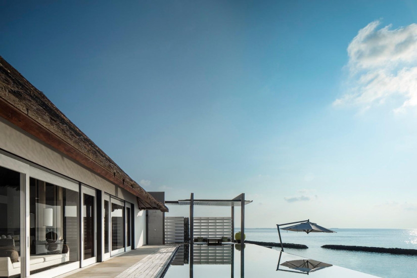 - 295 м2. Состоит из двух спален (с кроватью king-size и двумя кроватями twin), гостиной, гардеробной, двух ванных комнат с ванной и ливневым душем, душа на открытом воздухе, гостевой туалетной комнаты, частного сада с обеденной зоной, террасы с 12,5-метрвоым бассейном, обеденной зоной, зоной отдыха, видом на океан и спуском в воду. Виллы расположены частично в саду, частично – над водой.