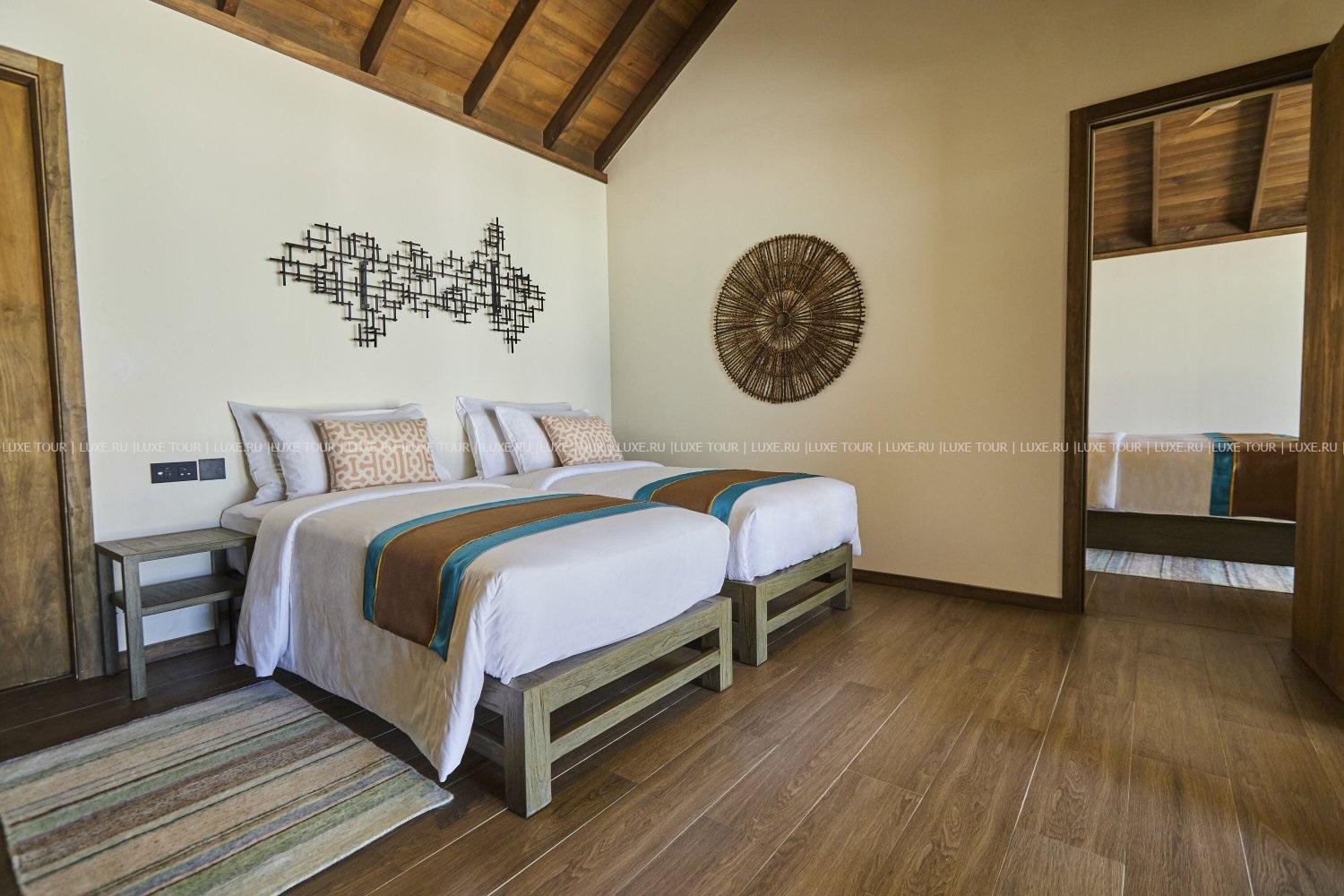 Отель располагает великолепными песчаными пляжами на двух островах, окруженных лагуной с домашним рифом.
