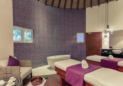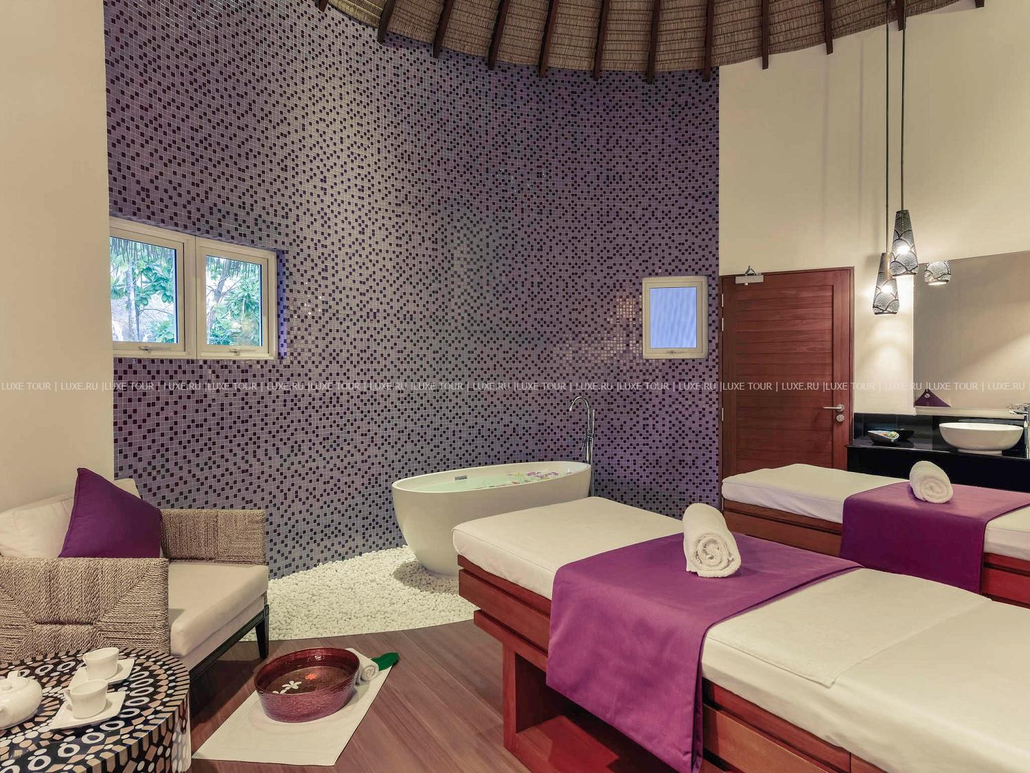 Центр Suvadiva Spa, расположенный в тропических зарослях, предлагает широкий спектр процедур, основанных на азиатских и западных традициях.