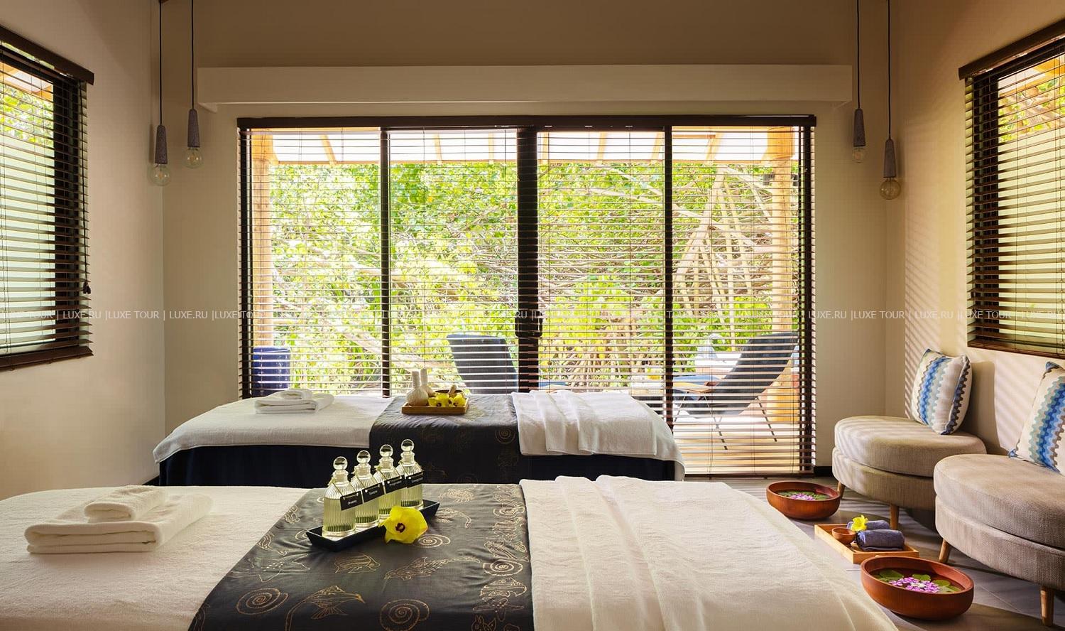 В тропическом саду, среди пальм и прудов с лотосами находится великолепный Spa-центр со студией маникюра, 4 спа-виллами и 2 спа-сьютами с гидромассажными ваннами. В центре предложен широкий выбор массажей и процедур с использованием натуральных продуктов.