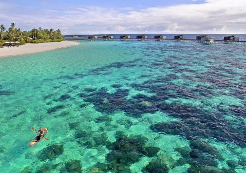 Отель располагает великолепными белоснежными пляжами и домашним рифом, опоясывающим весь остров.
