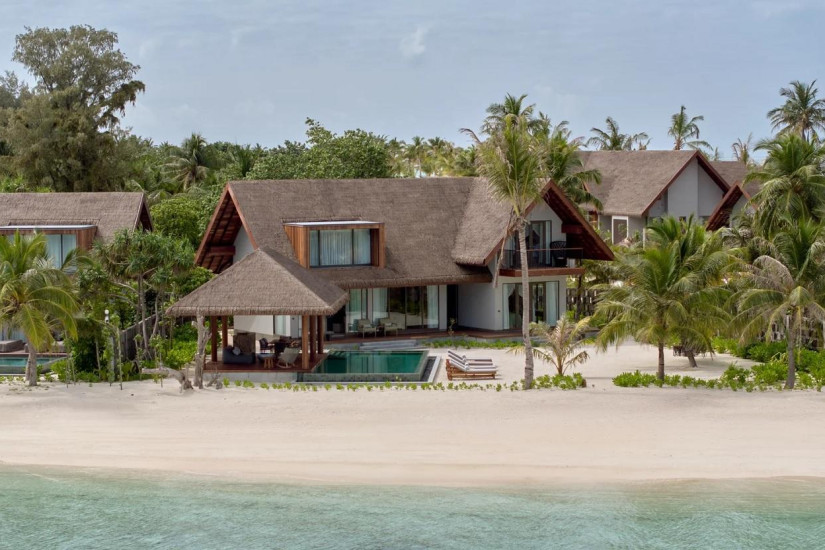 - 415 м2. Состоит из трех спален с кроватью king-size или двумя кроватями twin (одна – с гостиной зоной на застекленной веранде), гостиной с обеденной зоной, трех гардеробных, трех ванных комнат (одна – с ванной, крытым душем и душем на открытом воздухе), просторной террасы с бассейном (30 м2), зоной отдыха, обеденной зоной, видом на океан и выходом к пляжу. Виллы расположены в саду у пляжа. Максимальное размещение – 6 взрослых.