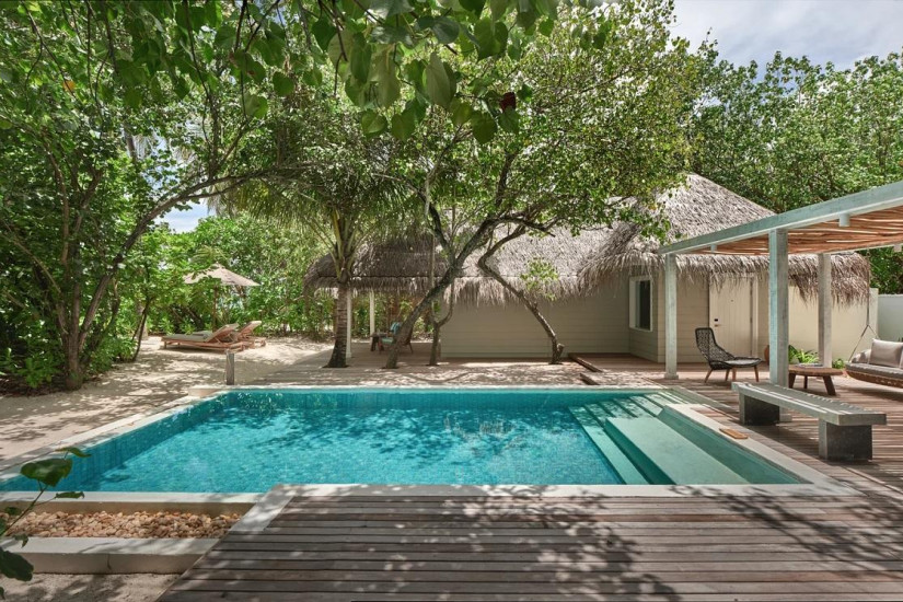 - 122 м2. Состоит из спальни с кроватью king-size или двумя кроватями twin, гардеробной, ванной комнаты открытого плана с ванной, крытым душем и душем на открытом воздухе, застекленной веранды с гостиной зоной, террасы с бассейном (15 м2), зоной отдыха, видом на океан и выходом к пляжу. Виллы расположены в саду у пляжа. Максимальное размещение – 2 взрослых + 1 ребенок.