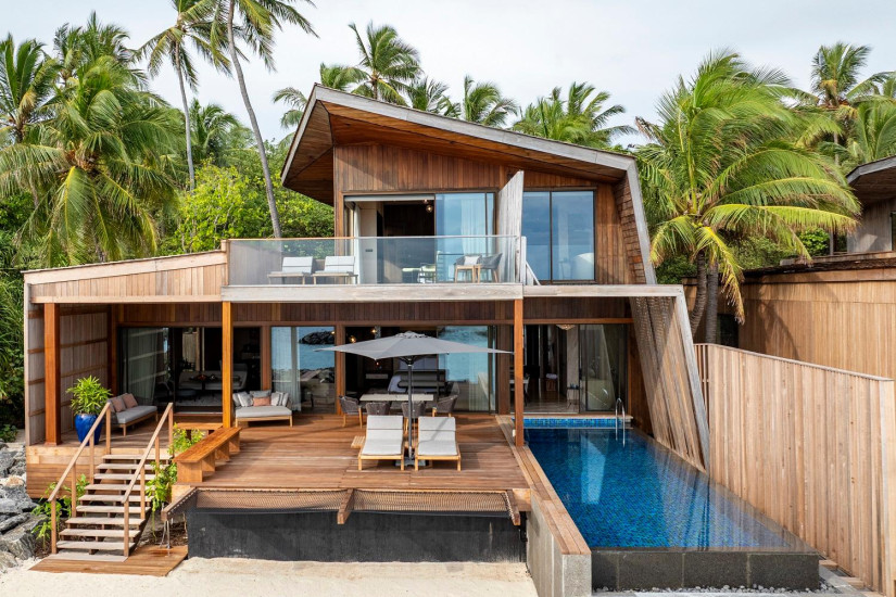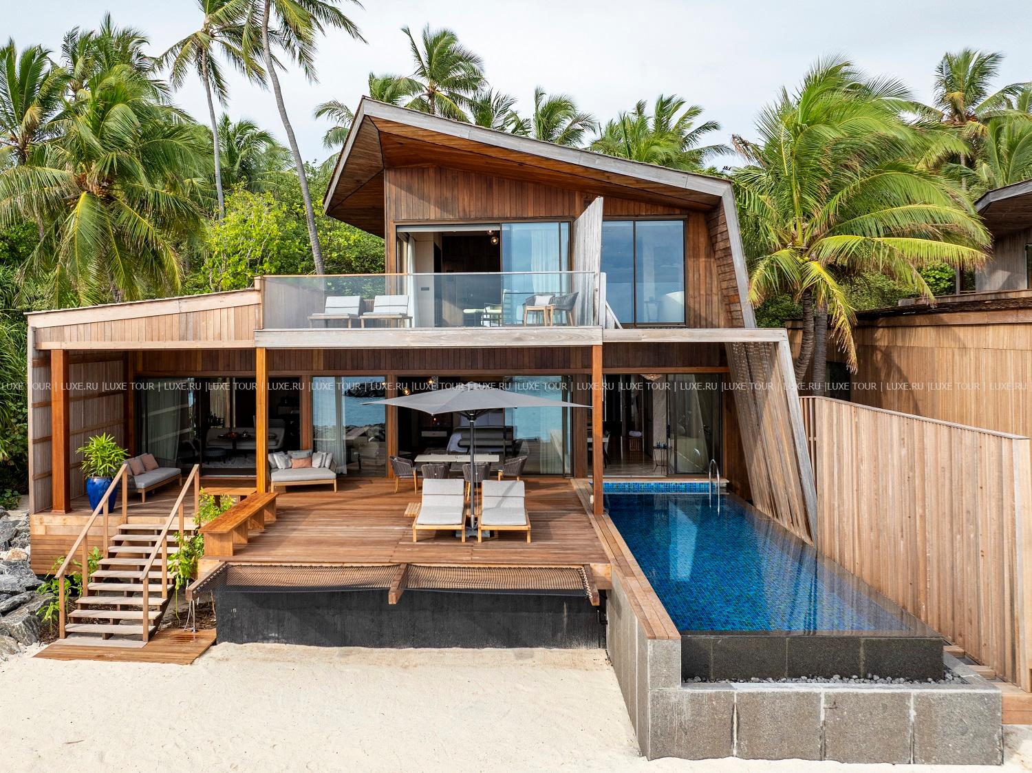 - 400 м2. Двухуровневая вилла состоит из двух спален (с кроватью king-size и двумя кроватями queen), гардеробной, двух ванных комнат, двух террас с зонами отдыха (на первом этаже – с бассейном (30 м2), обеденной зоной и выходом к пляжу). Вид на океан. Виллы расположены в саду у пляжа. Максимальное размещение – 4 взрослых + 1 ребенок