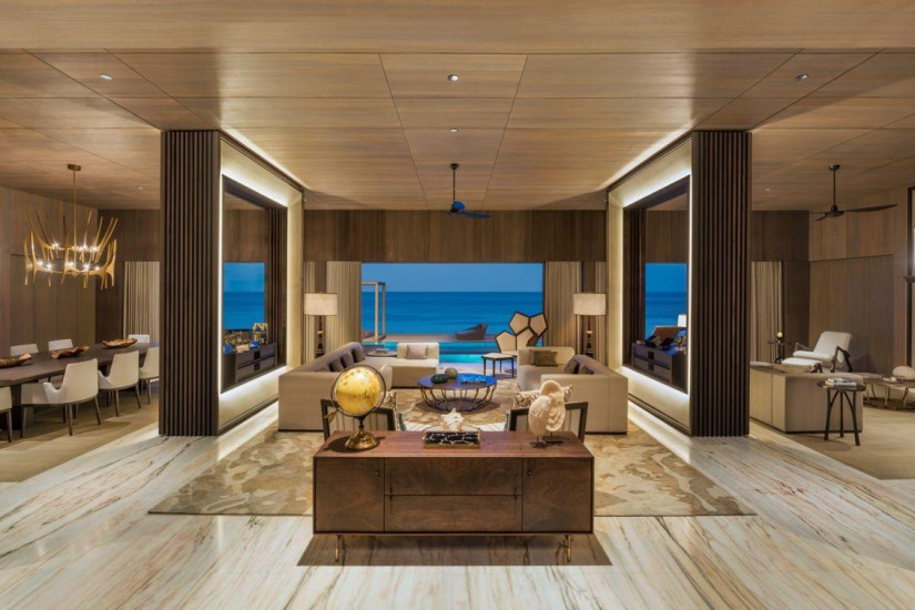 - 334 м2. Двухуровневая вилла состоит из двух спален (с кроватью king-size и двумя кроватями queen), гардеробной, двух ванных комнат, двух террас с зонами отдыха и обеденной зоной (на первом этаже – с бассейном (11 м2) и спуском в воду). Вид на океан. Максимальное размещение – 4 взрослых + 1 ребенок