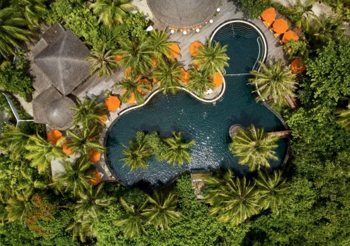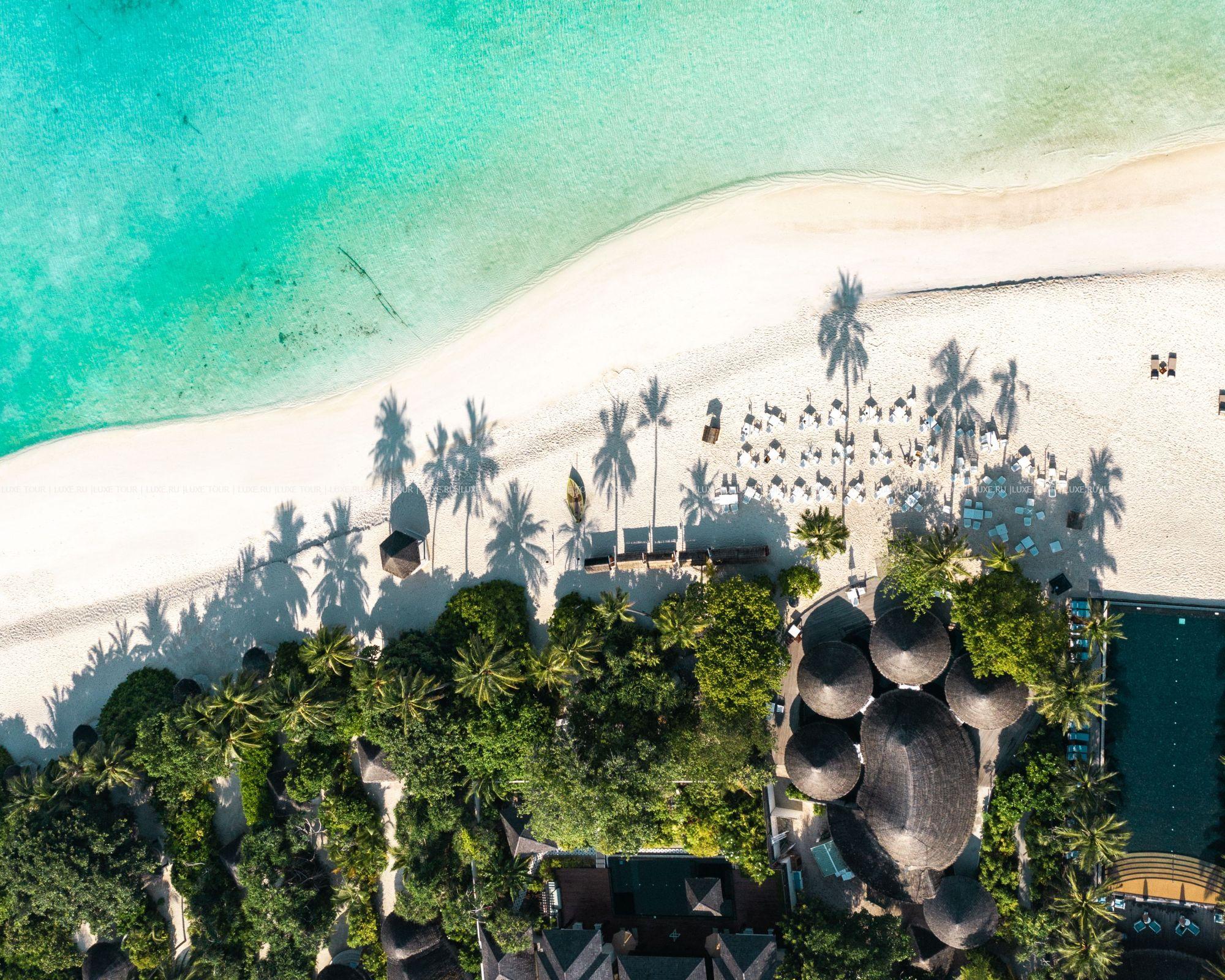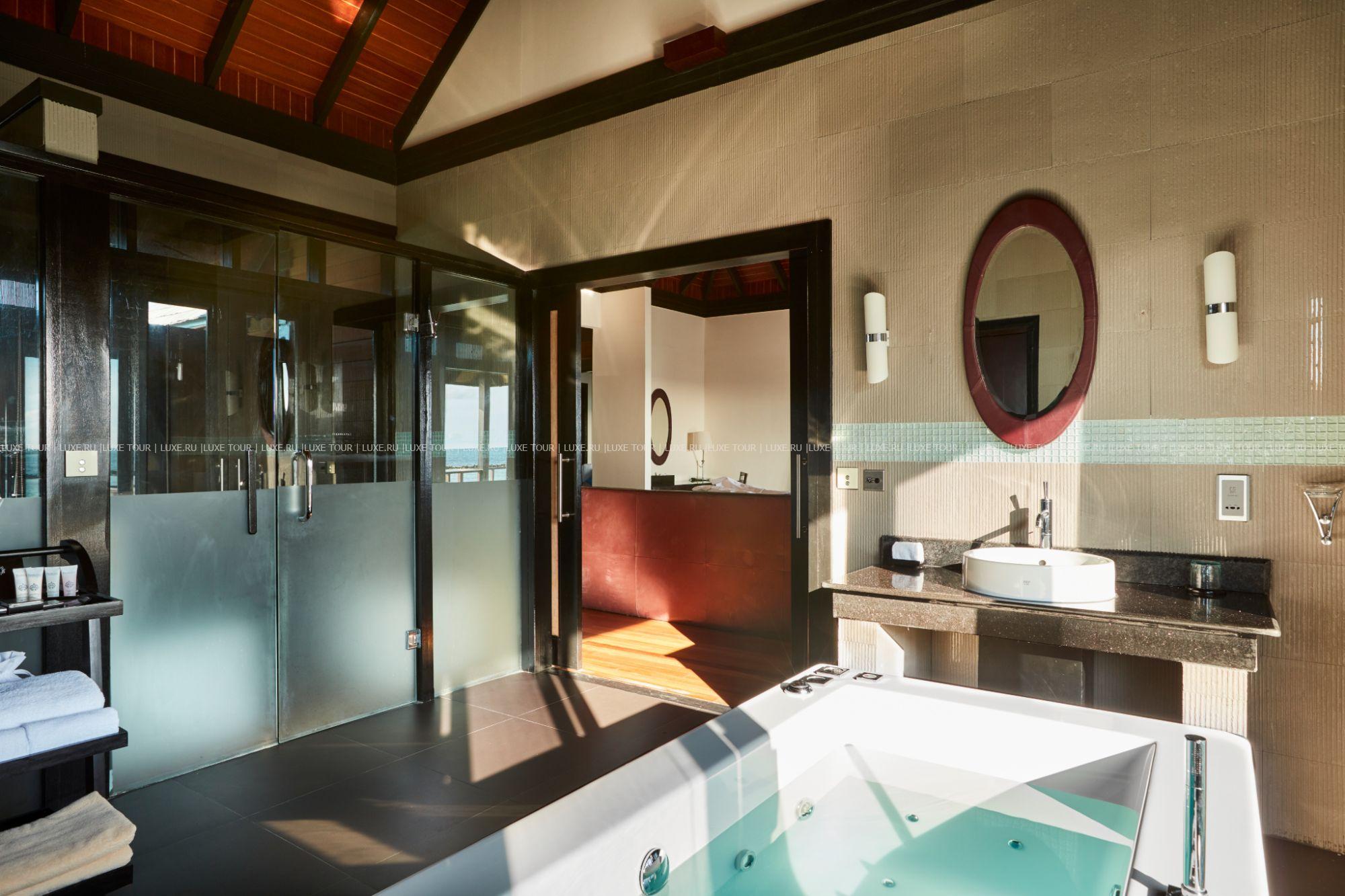 Многие виллы отеля расположены на сваях над водой или в непосредственной близости к пляжу.