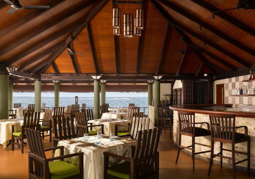 • Ресторан Bageecha, оформленный в сине-белых тонах и открытый на завтрак, обед и ужин, впечатляет разнообразием блюд континентальной, мальдивской и азиатской кухни на «шведском столе».