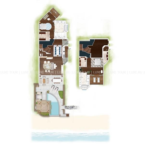 195 м2. Состоит из спальни, гостиной, гардеробной, ванной комнаты, меблированной террасы с обеденной зоной. Расположен на берегу мооя. Максимальное размещение – 2 взрослых + 1 ребенок.
