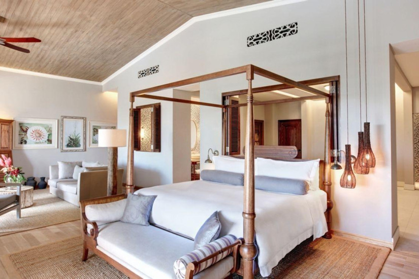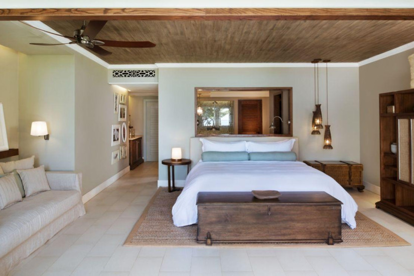 - 100 м2. Состоит из спальни с кроватью king-size и зоной отдыха, гостиной, гардеробной, ванной комнаты с ванной и отдельным душем, террасы с зоной отдыха, выходом к пляжу и видом на океан. Номера расположены на 1 этаже у пляжа. Максимальное размещение – 2 взрослых + 2 ребенка.