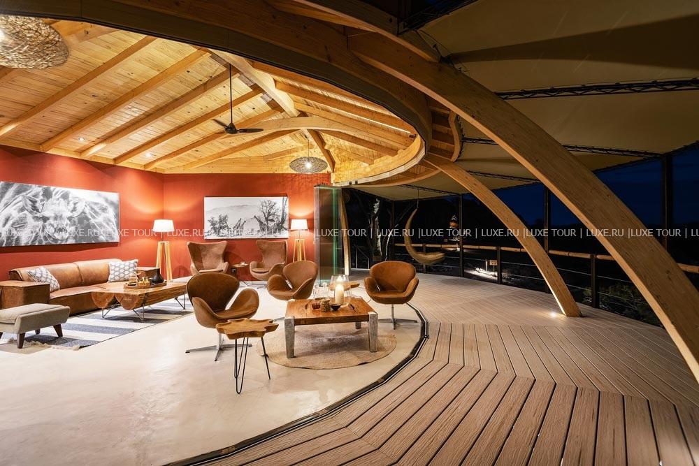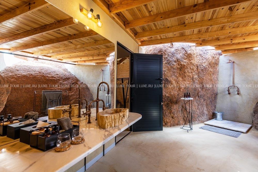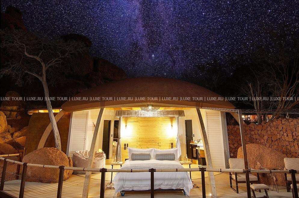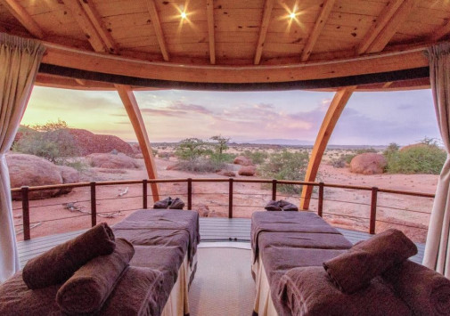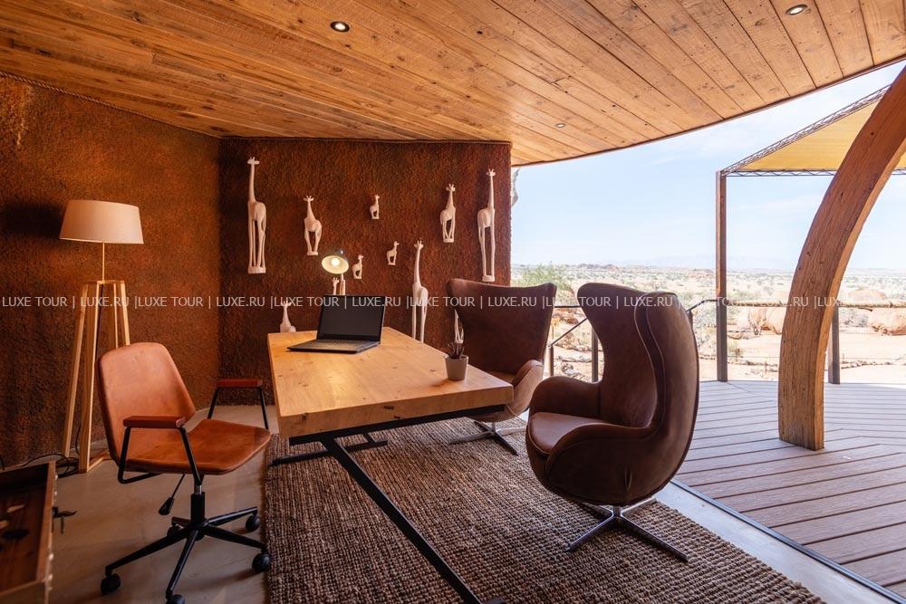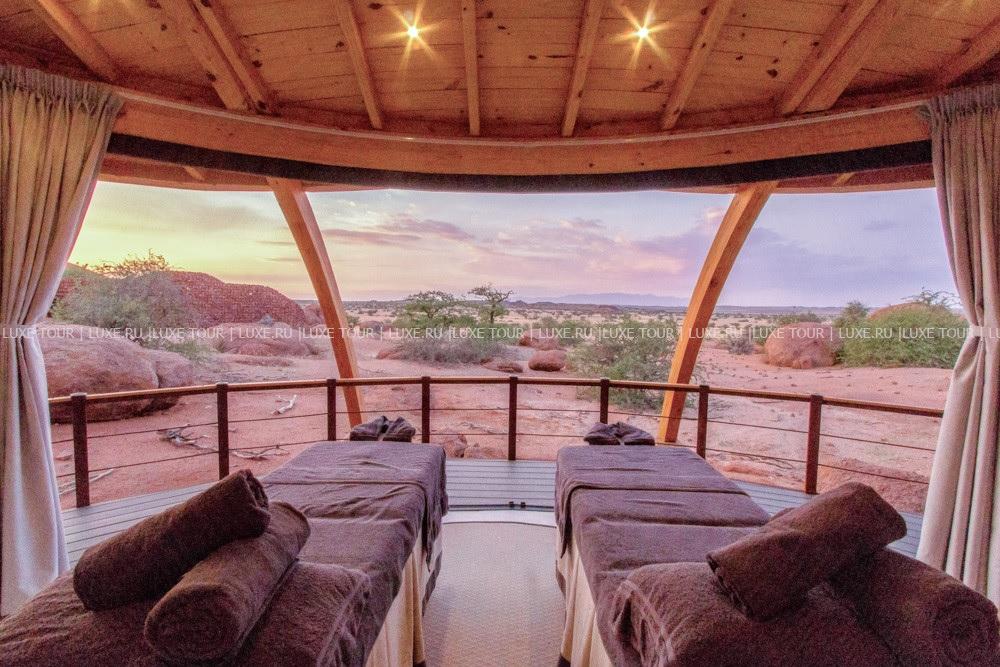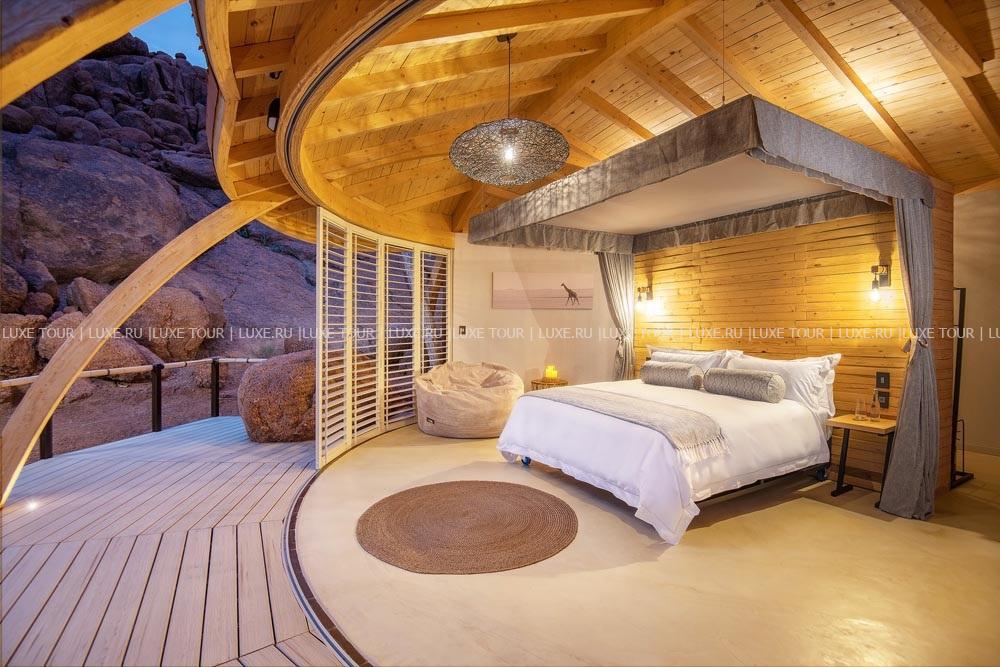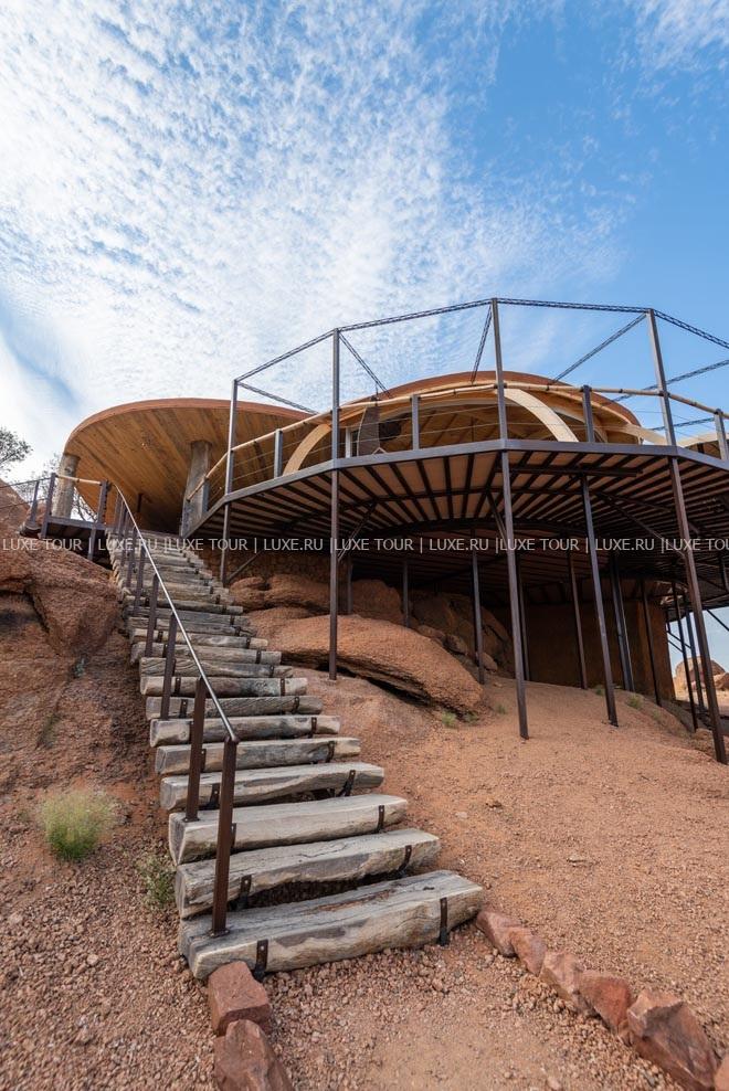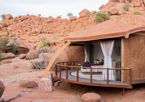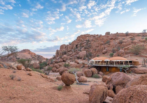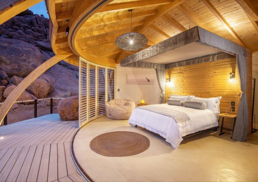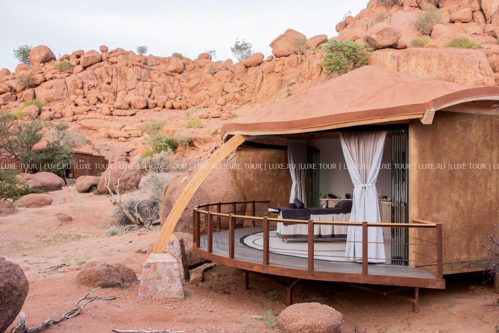 У подножья двух гранитных скал, соединенных хребтом и обращенных на юг, разместились шесть номеров-коттеджей Onduli Ridge, спрятанных среди массивных валуов. Сафари-лагерь, название которому дал местный вид жирафов, спроектирован так, чтобы отовсюду открывался вид на удивительные пейзажи заповедника Доро Навас, фантастические скалы-инзельберги, величественную гору Брандберг и усеянное звездами ночное небо Дамараленда. И, конечно, гостей ждут захватывающие приключения, главное из которых –наблюдение за местными обитателями, в числе которых слоны, черные носороги, гепарды, леопарды, львы, эндемичные виды пернатых и многие другие. Onduli Ridge – уютный оазис среди уникальной природы африканского заповедника.