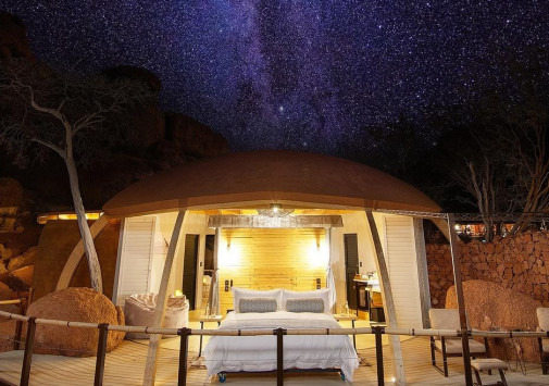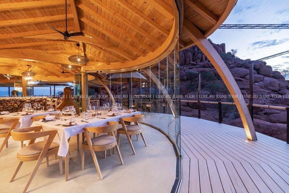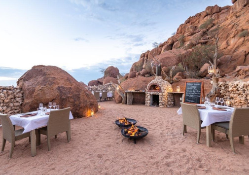 - В баре и у вечернего костра можно отдохнуть за напитком, любуясь удивительными пейзажами Дамараленда.