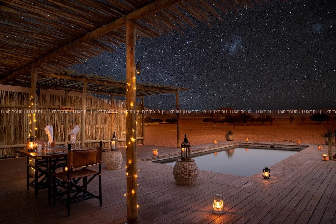 Отель расположен на территории частного заповедника Намиб Ранд на юго-западе Намибии, рядом с красными дюнами плато Соссусфлей.