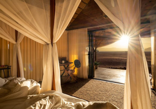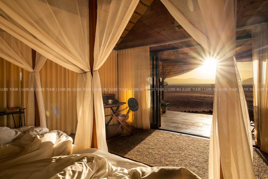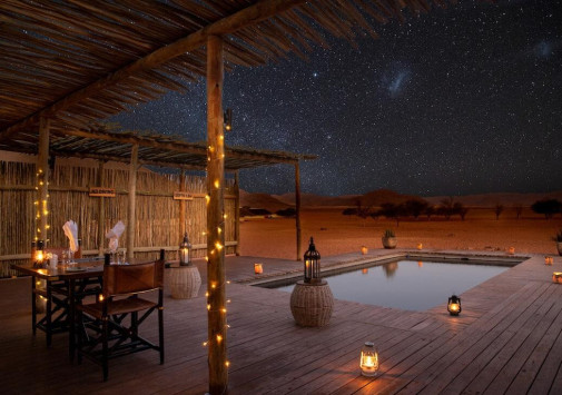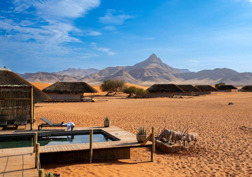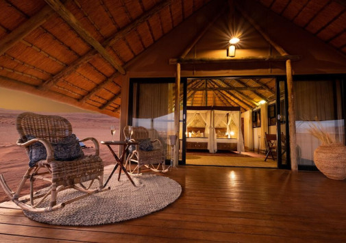 Kwessi Dunes расположен в глубине частного заповедника Намиб Ранд, в окружении скалистых гор и сюрреалистических красных дюн пустыни Соссусфлей. В сафари-лагере всего 12 шале, в каждом из которых имеется отдельная спальня под открытым небом для наблюдения за звездной галактикой. Кроме захватывающих сафари, прогулок на квадроциклах или воздушном шаре, верховой езды и других увлекательных занятий, гости могут освежиться в бассейне, насладиться вкусными блюдами в ресторане или отдохнуть в баре за бокалом вина, любуясь окружающими пейзажами. Kwessi Dunes предлагает незабываемый отдых среди дикой африканской природы.