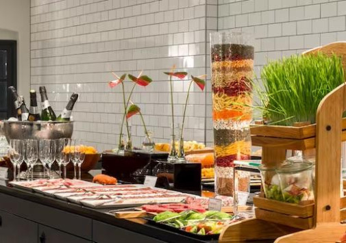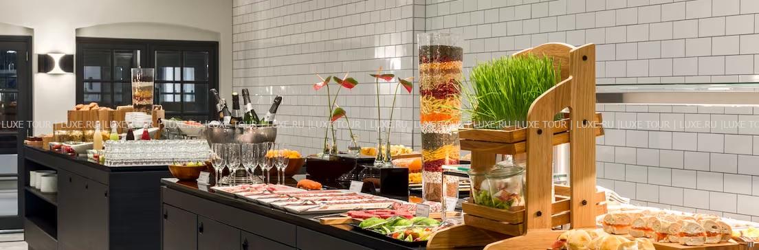 • В зале для завтраков сервируют завтрак «шведский стол».