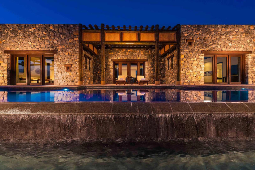 - В отеле 84 номера категории Suite и 2 виллы с собственным бассейном. Просторные номера выполнены в элегантном современном стиле, отделаны натуральным деревом и украшены произведениями оманских мастеров, а с балконов открывается потрясающий панорамный вид на горы Аль-Хаджар.