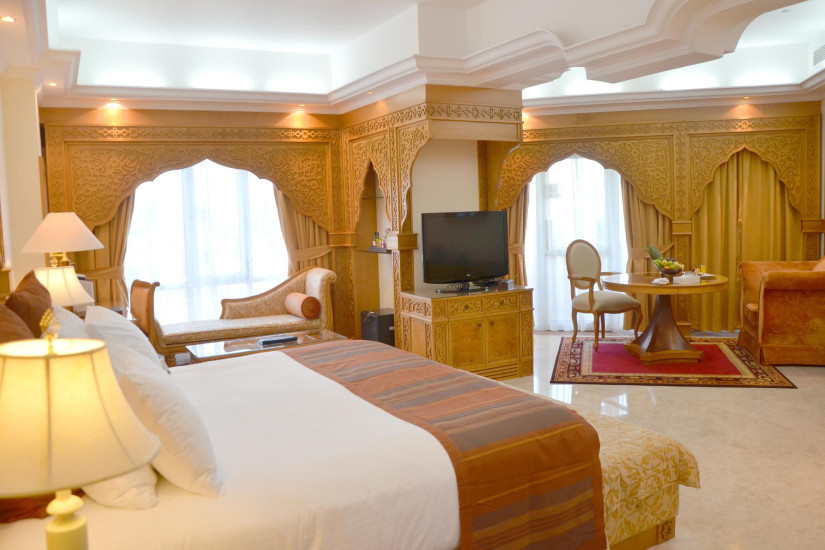 - Отель располагает номерами различных категорий, включая Guest Room, Suite и Villa. Номера оформлены в элегантном современном стиле с элементами арабского декора, а из окон открывается прекрасный вид на сады и бассейны отеля, и Аравийское море.
