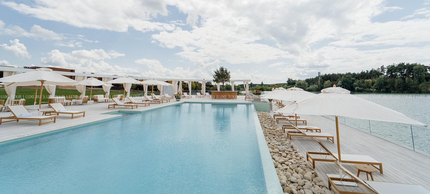 Бутик-отель Riviera Wellness Resort расположен на берегу живописного Лазурного озера, на территории современного курортного комплекса, окруженного сосновым бором. Здесь созданы идеальные условия для релаксации, оздоровления и отдыха на природе. Стильные комфортабельные номера, в которые вода подается прямо из скважин 500-метровой глубины, великолепный Spa-комплекс и первоклассная многопрофильная клиника «Евромед», замечательный детский клуб и большой аквапарк, спорт и развлечения на любой вкус, гастрономический ресторан и отличные возможности для проведения праздников, деловых и корпоративных мероприятий. Riviera Wellness Resort – роскошный курорт в чудесном экологическом уголке Белгорода.