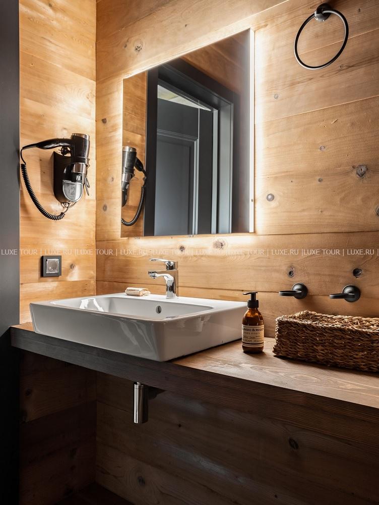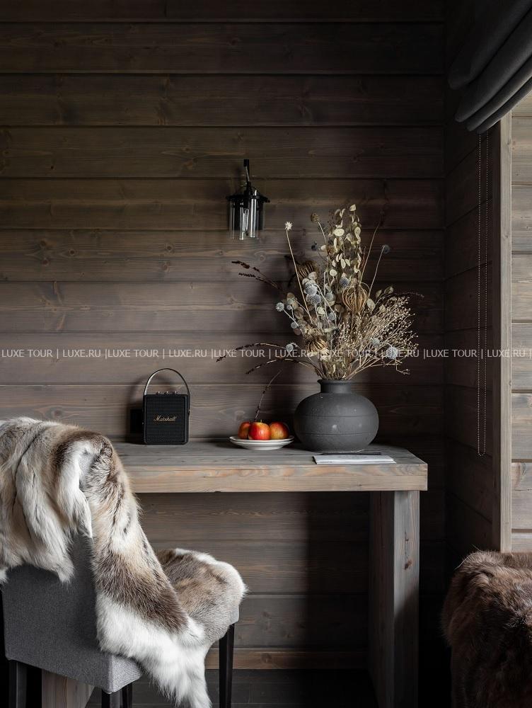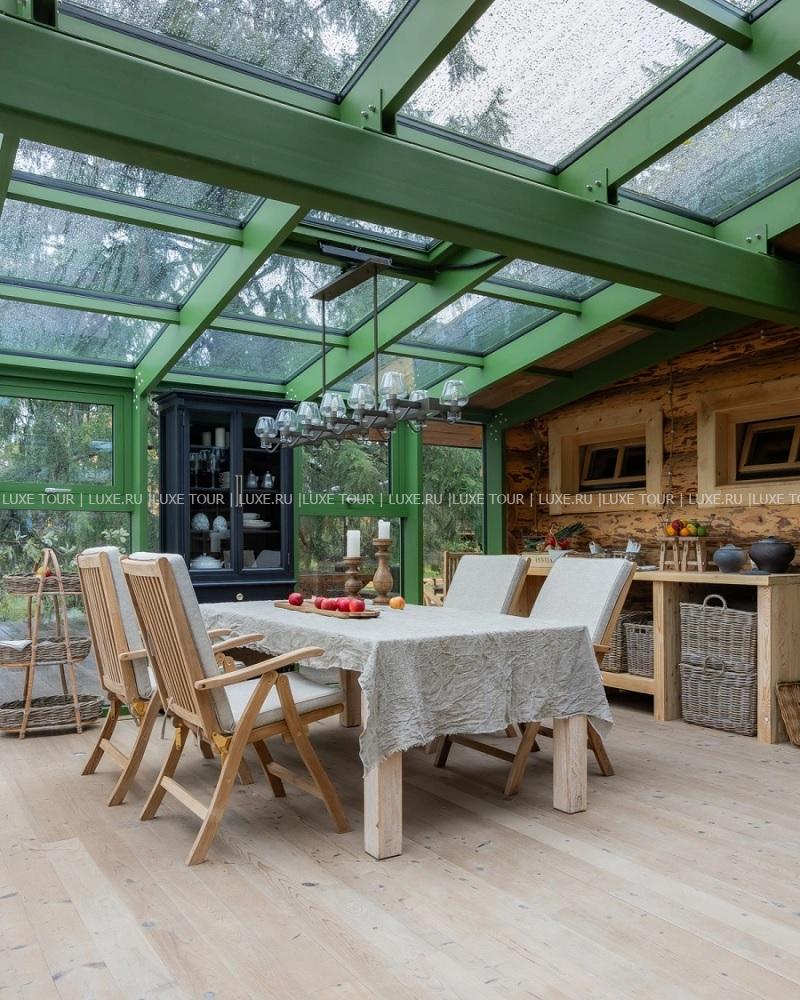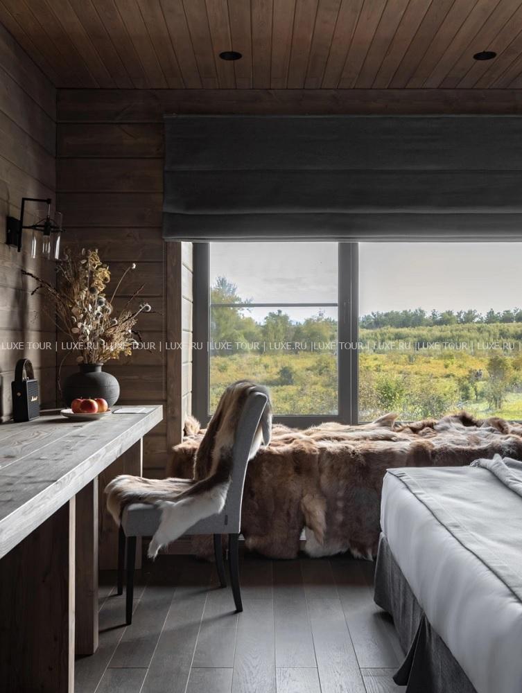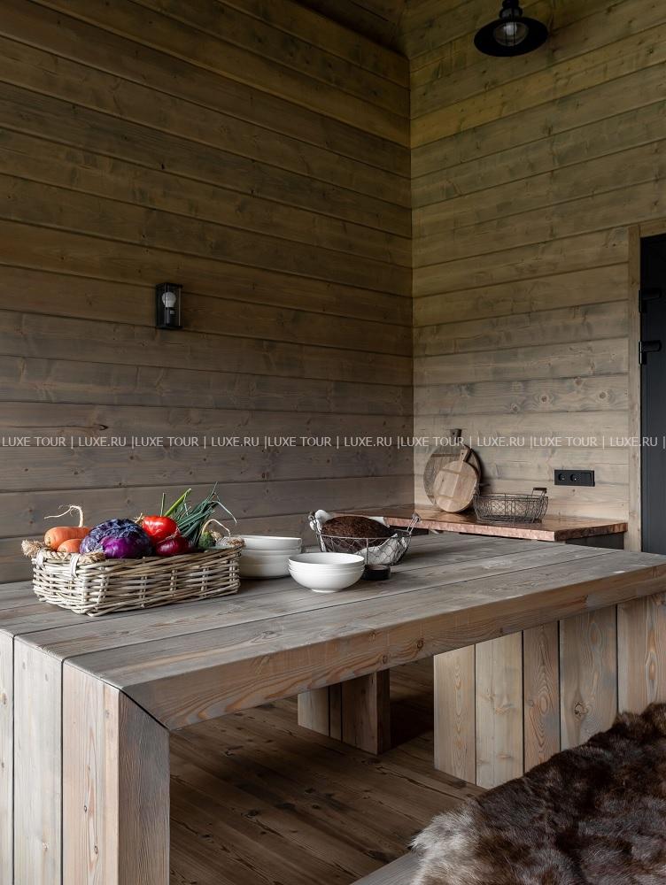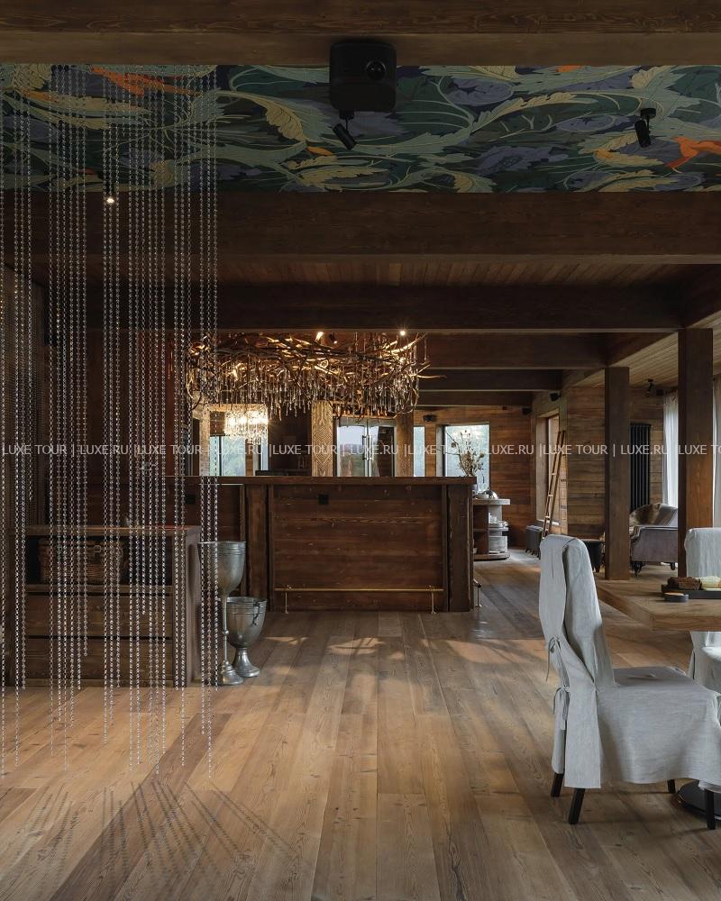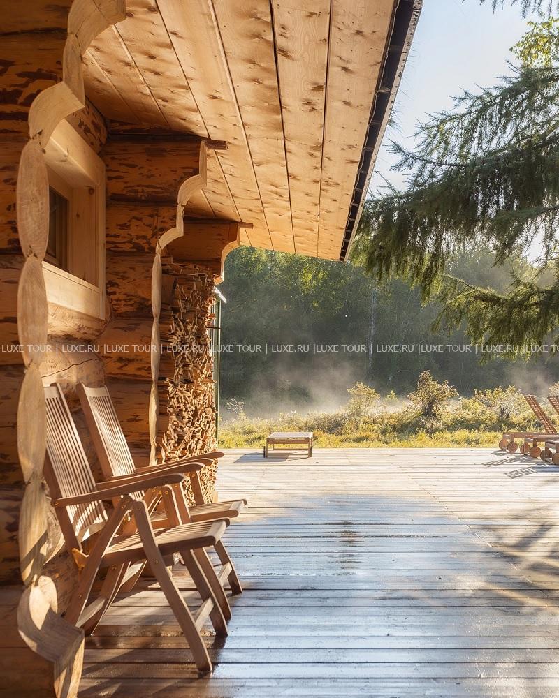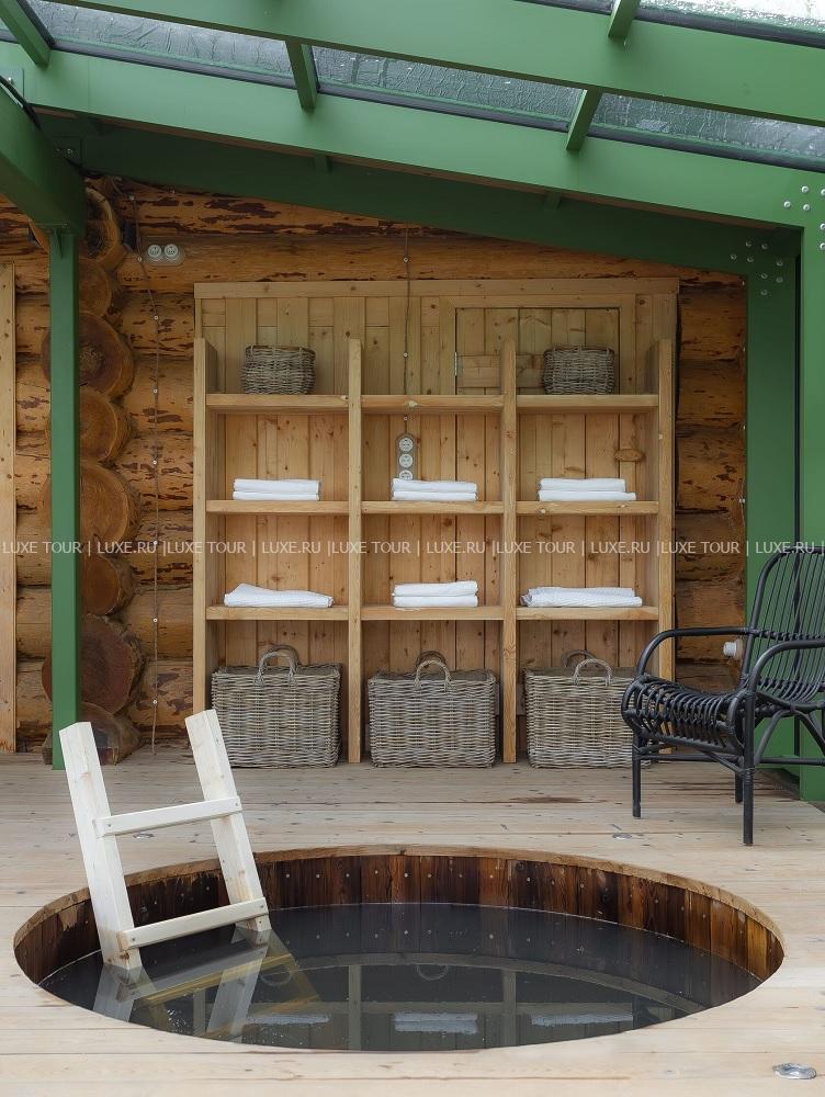 В бревенчатом срубе из камчатской лиственницы разместилась традиционная русская баня с двумя печами работы известного мастера-печника Романа Шибаева, купелью и оранжереей для чаепитий.