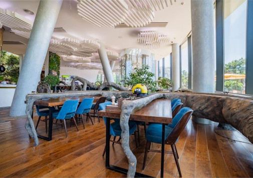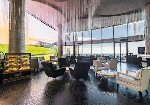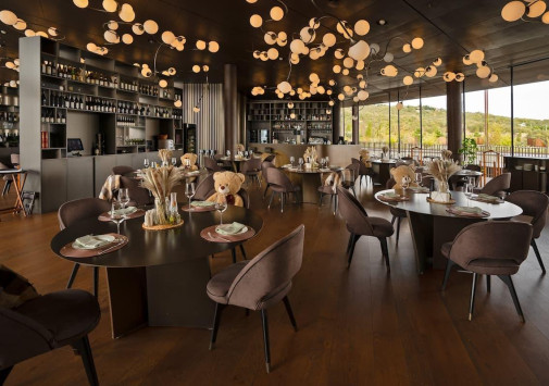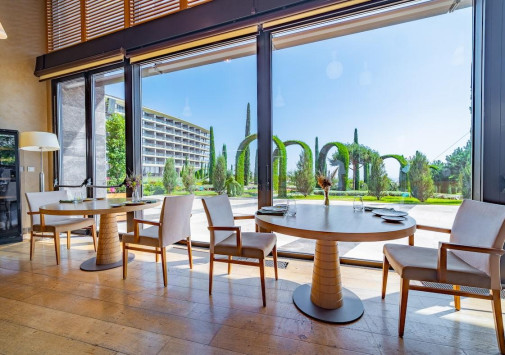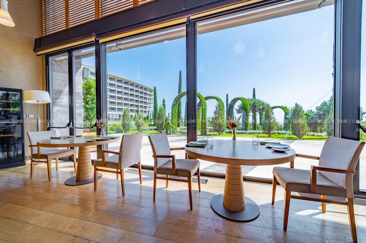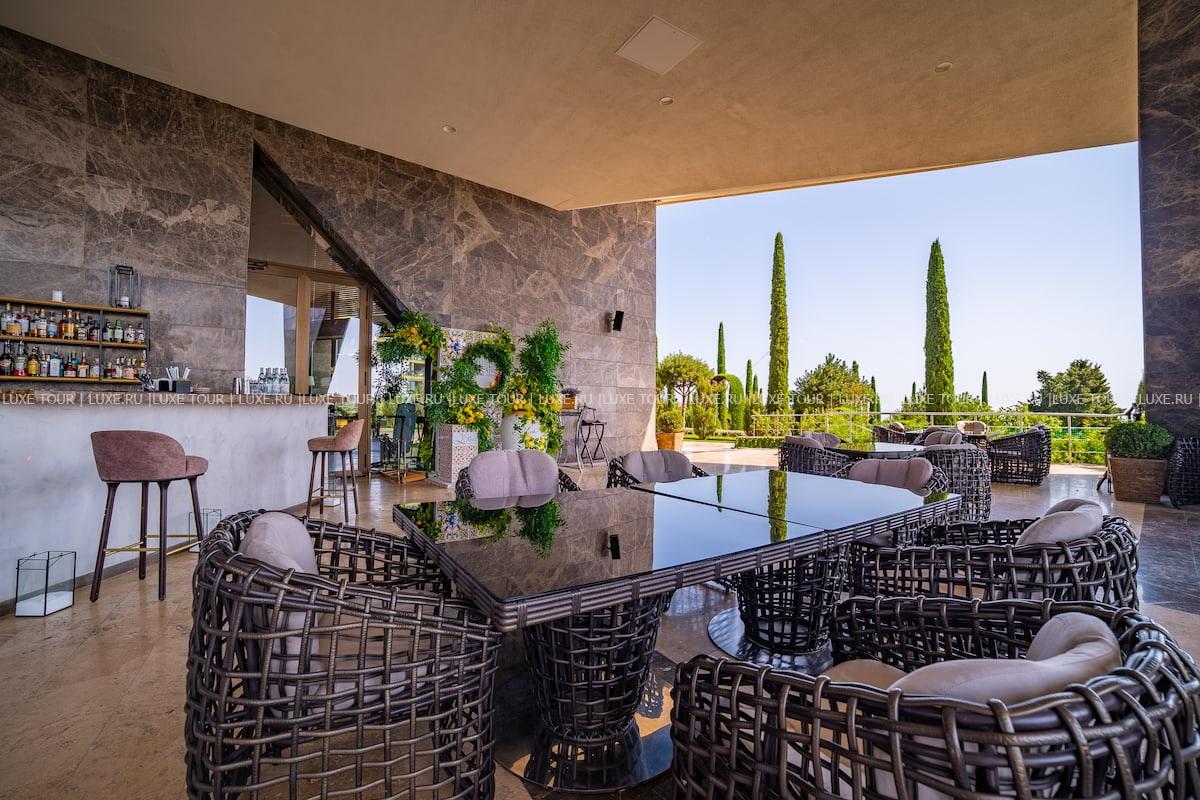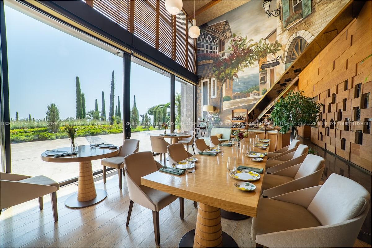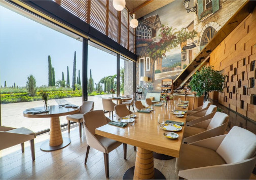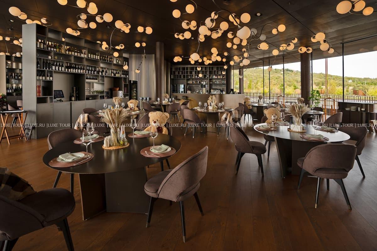 - Гастрономический ресторан a la carte WineKitchen с открытой террасой и видом на винный парк представляет авторскую кухню, основанную на использовании натуральных местных продуктов, в том числе, с собственной сыроварни, а бар – фирменные коктейли на основе крымских вин.