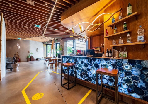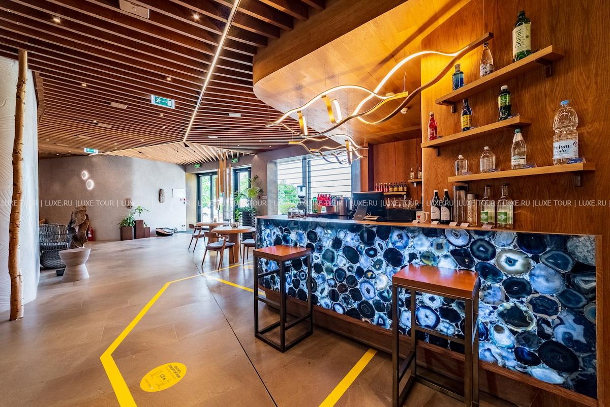 - В баре Aqua представлена коллекция минеральных вод из разных стран и напитков на основе крымских и экзотических ягод и фруктов, а напротив бара находится бювет питьевых минеральных вод.