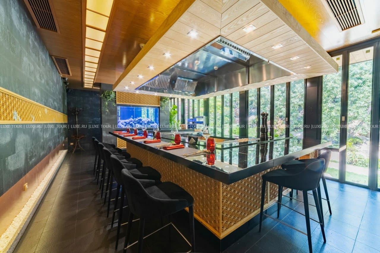 - В Японском саду находится стильный японский ресторан Teppanyaki, работающий в концепции «живой кухни».