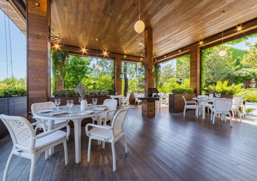 - Villa Cafe – ресторан русской кухни с уютным залом и утопающей в зелени верандой.