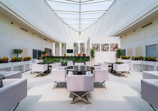 Для гостей – 5 залов для деловых и торжественных мероприятий, включая зал с 3 секциями общей площадью 1150 м2 и вместимостью до 1100 человек, открытый амфитеатр на 500 мест, площади для мероприятий на открытом воздухе, бизнес-центр, Wi-Fi, парк, детейлинг-центр Car Blanche, парковки, аренда машин, услуги консьержа, услуги прачечной.