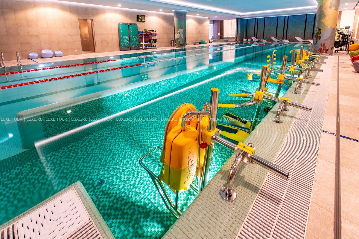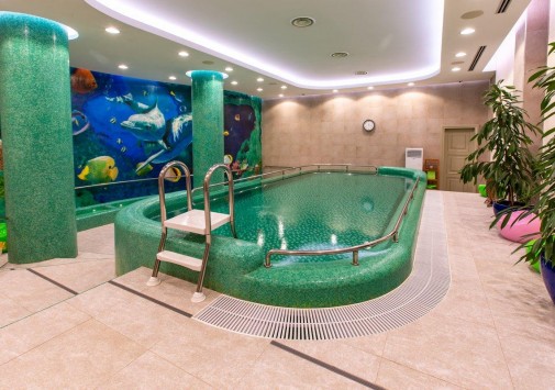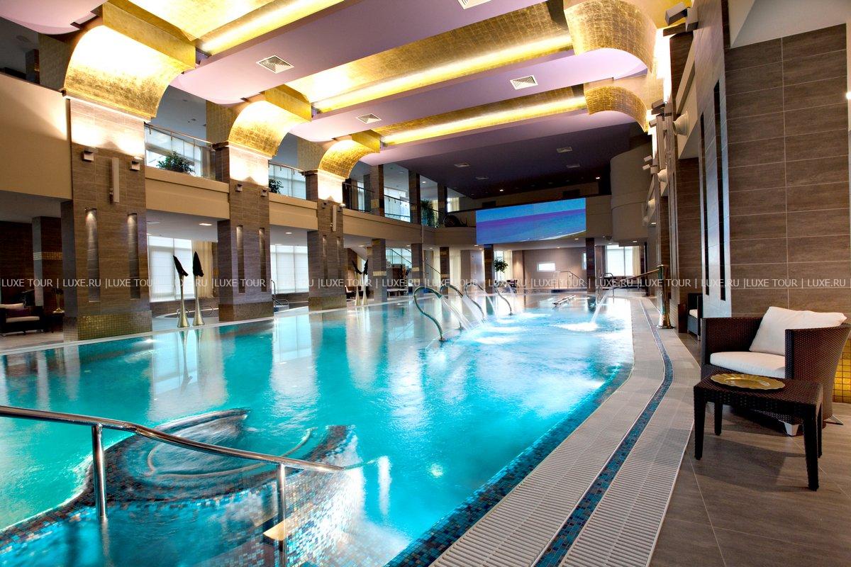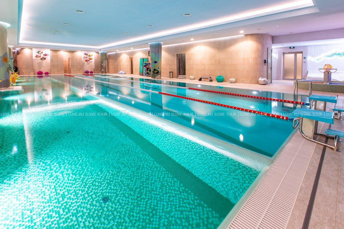 Комплекс Luciano Hotel & Spa предлагает 5 Спа-бассйнов (бассейн для плавания с противотоками, гейзерами, водопадами, дорожкой для ходьбы с аэромассажем, бассейн с морской водой, молочный бассейн, бассейн с гидромассажным оборудованием, бассейн для аквааэробики; спортивный бассейн длиной 25 м глубиной 2,4 м, тремя плавательными дорожками, эксклюзивной зоной тренажеров Aqua GYM и зоной для аквааэробики; детский бассейн, который предлагает комплексный подход к оздоровлению детей, включающий в себя возможность дополнительно использовать дорожку Кнейпа, сауну с комфортной температурой для детей любого возраста, грудничковое плавание от 3 месяцев до 6 лет, групповые и персональные занятия для детей до 6 лет.