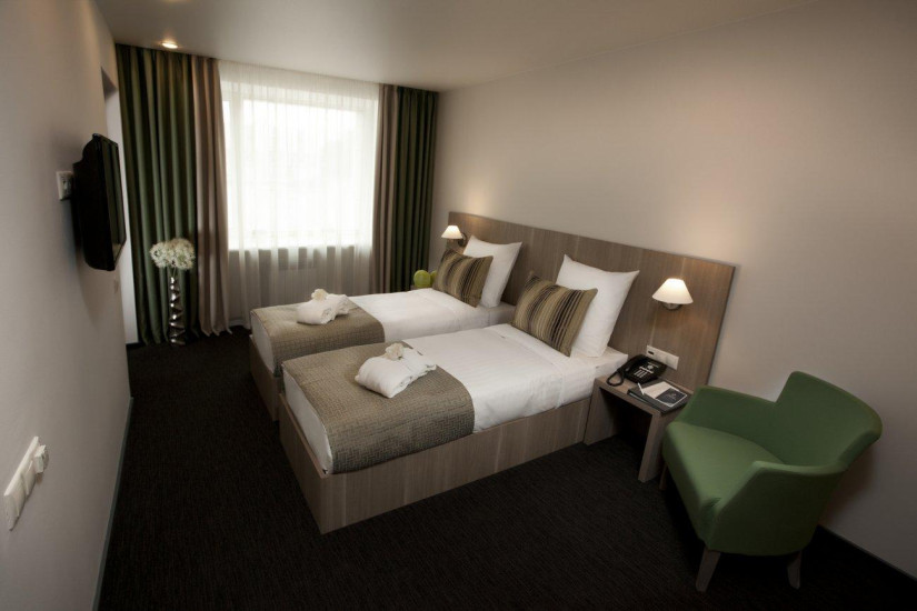 - Отель состоит из 74 комфортабельных номеров различных категорий, расположенных в двух зданиях на противоположных сторонах улицы. Здания соединены между собой теплыми переходами, что избавляет от необходимости выходить на улицу при перемещении между корпусами.