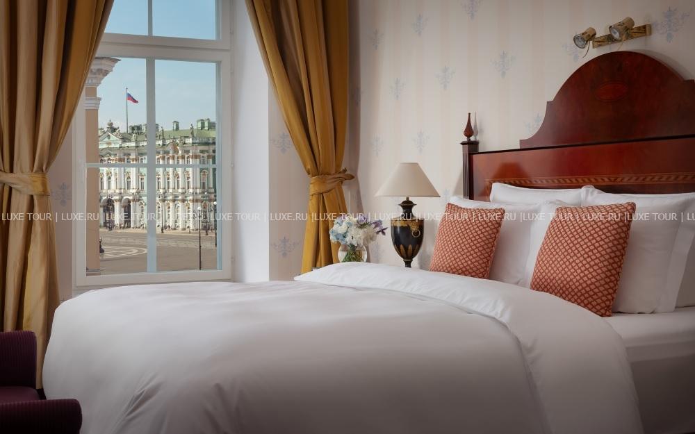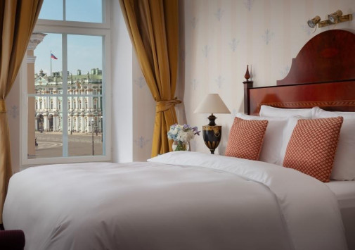 Отель расположен на набережной Мойки, напротив Эрмитажа и Дворцовой площади, в нескольких минутах ходьбы от Невского проспекта, в 3 км от Московского ж/д вокзала и в 20 км от международного аэропорта Пулково.