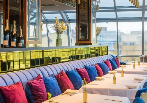 - Изысканный ресторан Bellevue с открытой террасой и великолепным 360-градусным видом на исторический центр Петербурга предлагает сочетание европейской и русской кухни.