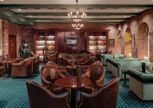 - Элегантный бар Von Witte с камином, винтажной библиотекой и видом на набережную Мойки стилизован под кабинет архитектора и путешественника Василия фон Витт.