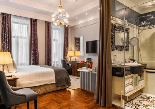 Всего в нескольких шагах от Невского проспекта, на знаменитой улице Марата находится отель Helvetia, занимающий изящный необарочный особняк XIX века и небольшое здание в глубине очаровательного дворика с садом. Частный отель, известный по сериалу «Записки отельера» и бестселлерам, написанным его владельцем Юнисом Теймурханлы, воссоздает атмосферу старинного Петербурга, сочетая ее с домашним уютом и первоклассным современным сервисом – от элегантных комфортабельных номеров и ресторанов с превосходной кухней до фитнес-центра, Spa-салона и конференц-залов. Helvetia – отель с богатой историей, оригинальной концепцией и великолепным расположением в самом сердце Санкт-Петербурга.