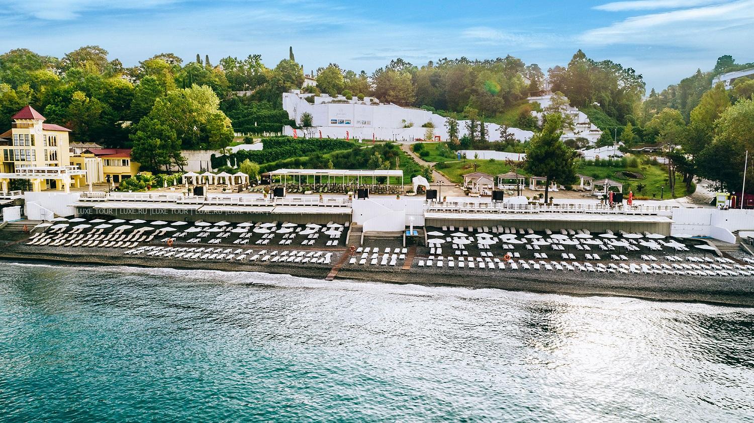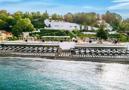 В 200 м от отеля находится частный оборудованный галечный пляж, отмеченный Голубым флагом. Гостям вилл предоставляется индивидуальный шатер на пляже и отдельный выход к морю.