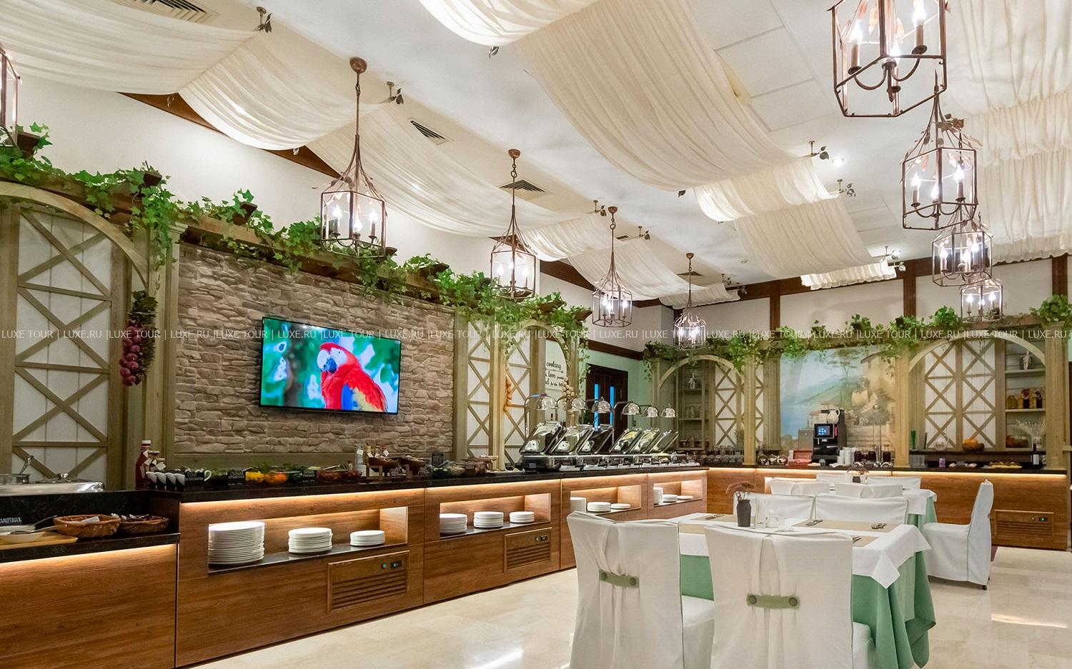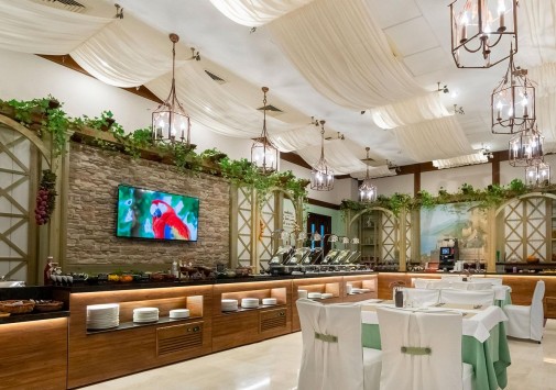- Атмосфера ресторана St.Barth навеяна карибским островом Саент-Барт, а разнообразие блюд на «шведском столе» дополнено Prosecco на завтрак и французским вином на обед.