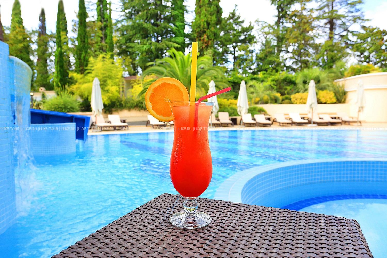- Luson – аква-бар на террасе у бассейна, предлагающий освежающие коктейли и лимонады.