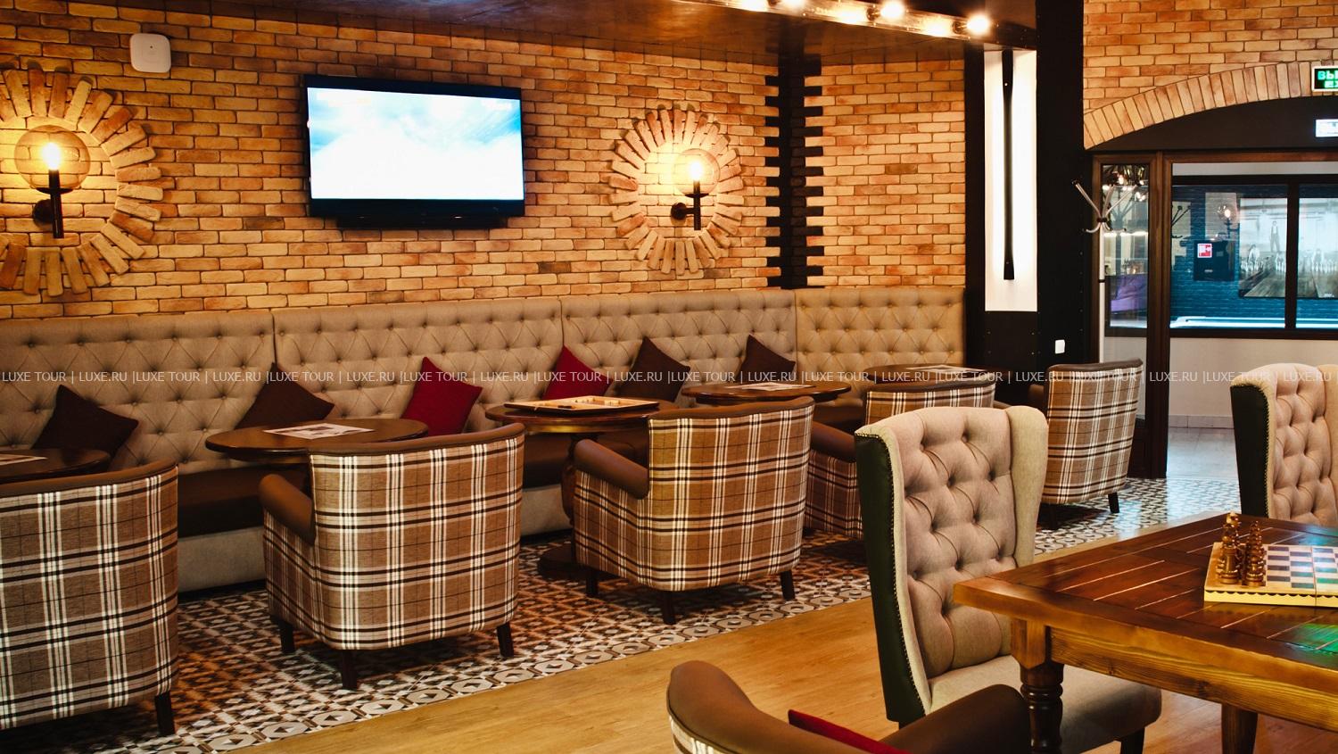 - В уютном спорт-баре в стиле традиционного паба можно отдохнуть за бокалом пива, сыграть партию в бильярд и посмотреть спортивные трансляции на большом экране.