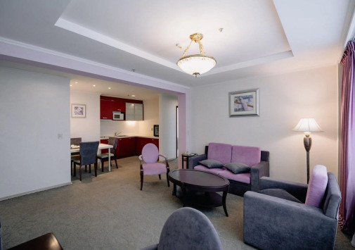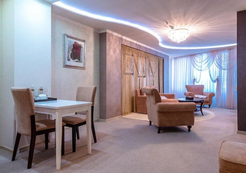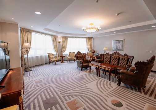 Для гостей – 2 зала для торжественных мероприятий вместимостью до 200 человек, панорамная терраса, бизнес-сервис, Wi-Fi, парковка, услуги консьержа, услуги прачечной.