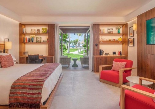 Роскошные виллы Eden Rock St Barths расположены в пышном саду у белоснежного пляжа и на живописной скале, возвышающееся над бирюзовыми водами залива Сен-Жан. Гостями фешенебельного отеля, основанного в 1950-е годы американским политиком и авиатором Реми де Хаененом, были режиссер Говард Хьюз и легендарная Грета Гарбо, которая однажды приехав на три дня, осталась в этом райском уголке на три недели. В 1995 году отель приобрели художница Джейн Мэтьюз с супругом. Новые владельцы не только восстановили элегантные интерьеры в стиле середины прошлого века, но и открыли собственную галерею искусств, а также расширили отель и добавили множество первоклассных современных удобств, включая гастрономический ресторан, представляющий блюда от «мишленовского» шеф-повара, Spa-центр, предлагающий эксклюзивные процедуры, и разнообразие возможностей для активного и семейного отдыха. Eden Rock St Barths сочетает первоклассный сервис, островной колорит и очарование 1950-х.