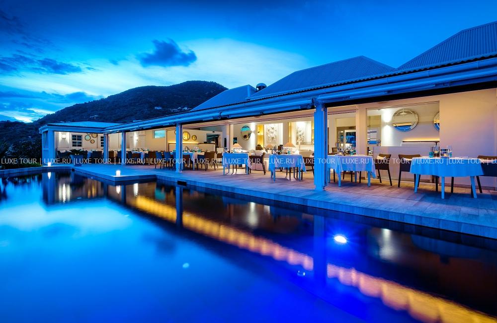 - Элегантный ресторан Le Toiny, расположенный на террасе с видом на море, предлагает деликатесы из морепродуктов и рыбы, а также изысканные блюда, навеянные средиземноморской кухней.